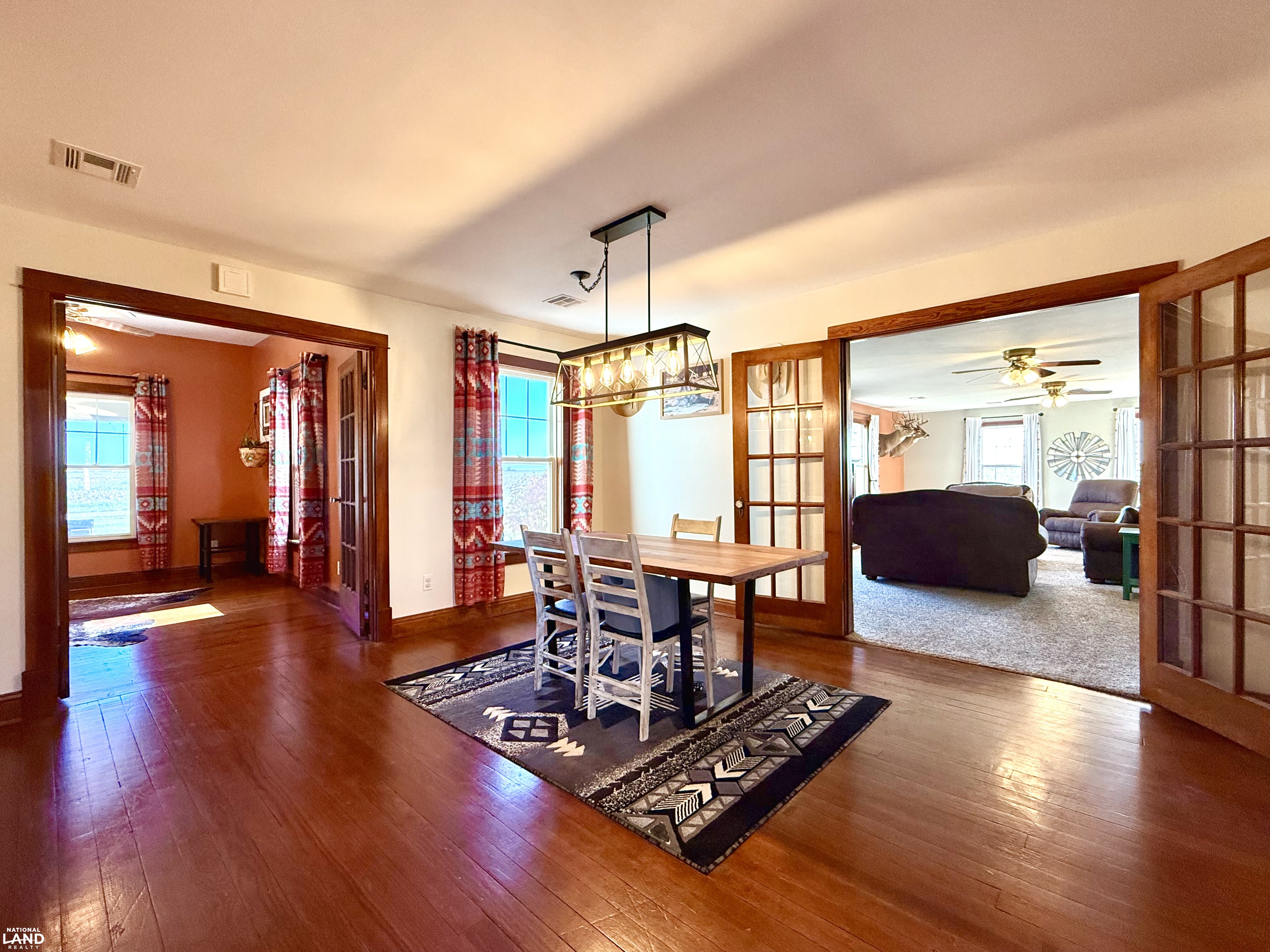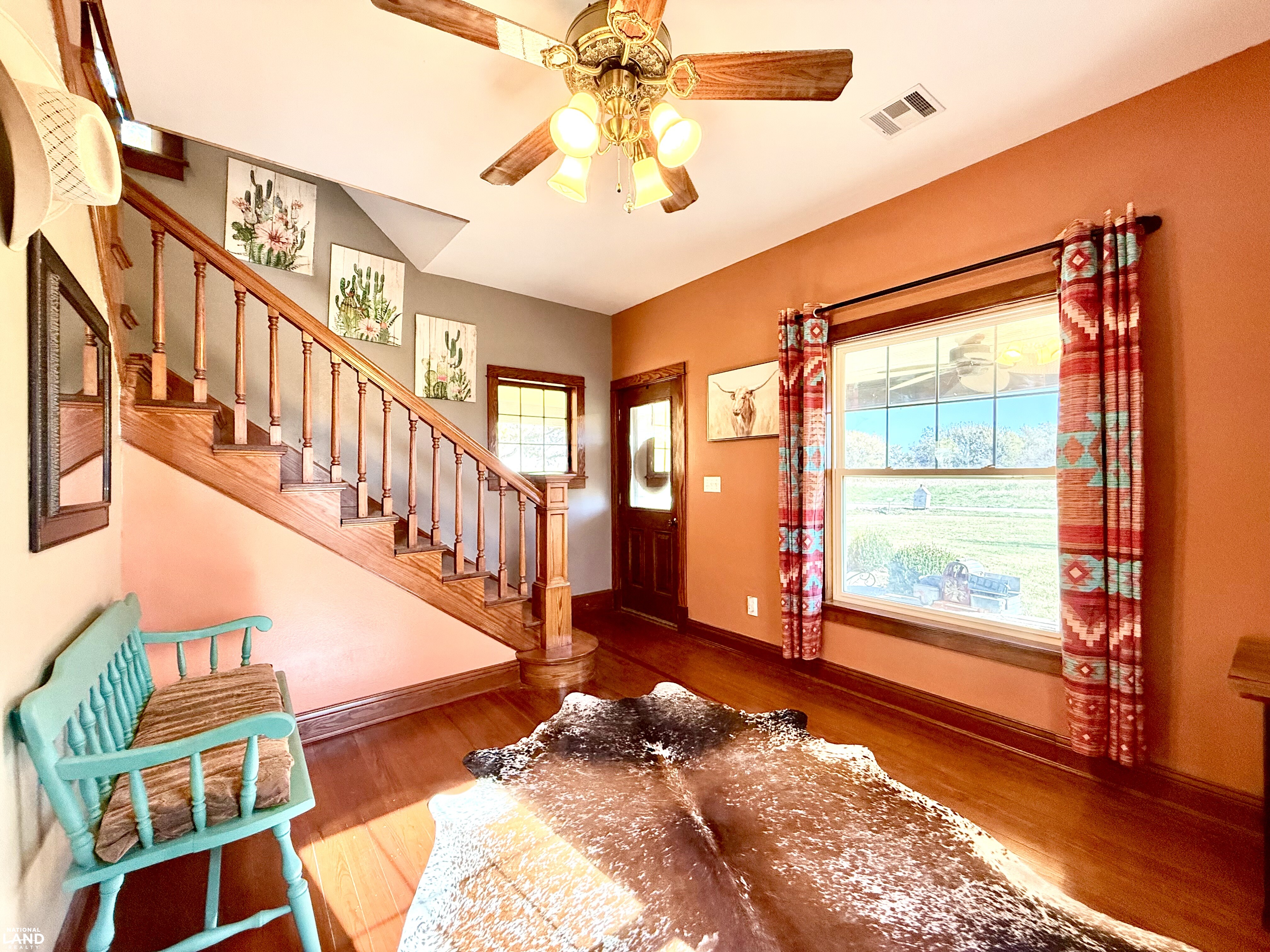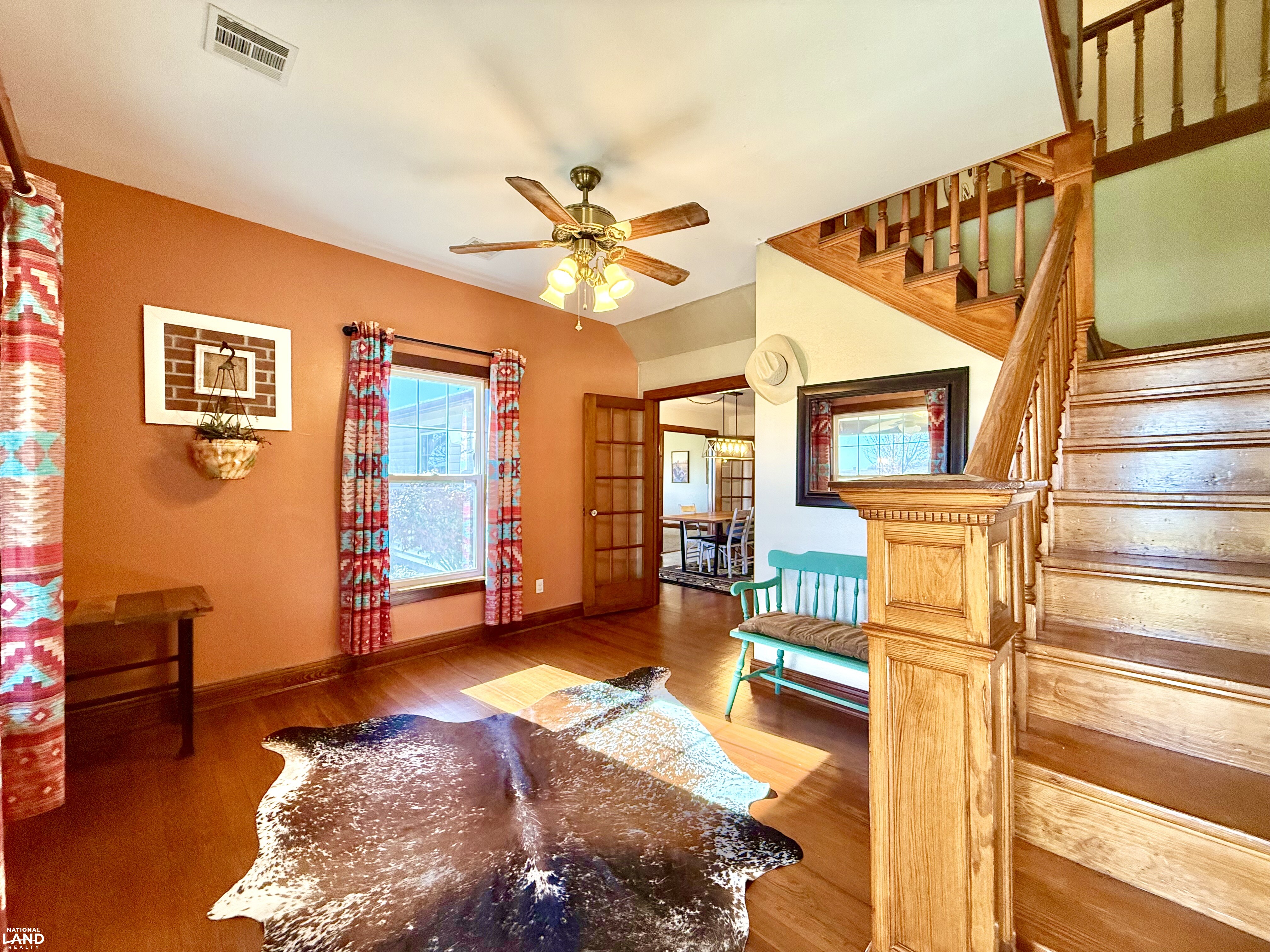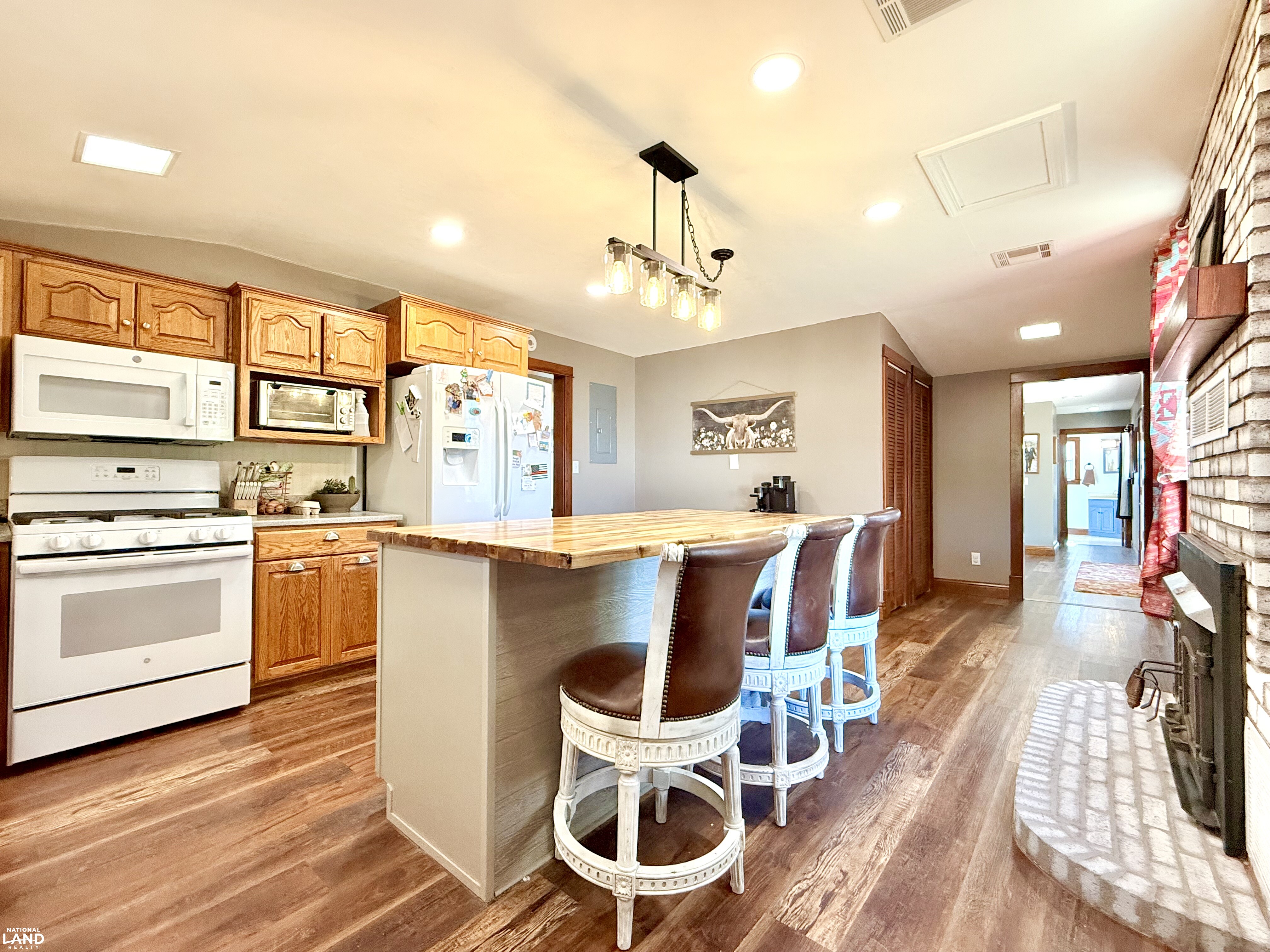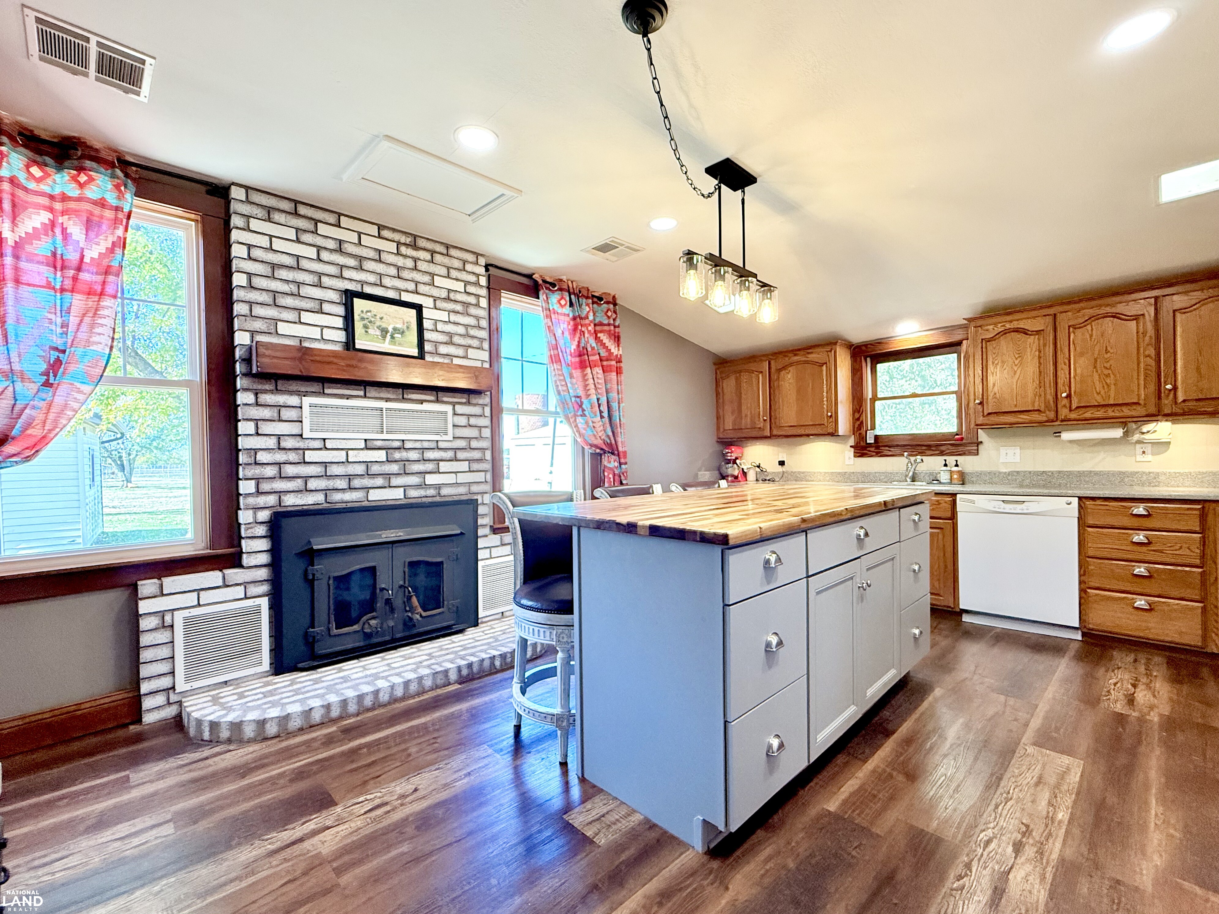 Beautifully renovated 4 bedroom, 2 bathroom farmhouse sitting on 9 +/- country acres. Offering 2400 sq ft of living space, this home combines modern comfort and timeless character. Features original hardwood floors, updated windows, updated infrastructure, a stunning staircase, formal dining room, and spacious living area. The kitchen offers a large island and wood burning fireplace which is ducted through portions of the house for cozy warmth. The primary bedroom and bath is on the main floor, with three additional bedrooms on the second floor. A large mudroom with laundry is conveniently located at the rear entrance. Outside you'll find a 30 x 40 shop, small office building (she shed or man cave), old boxcar that serves as a dog kennel and tack room, chicken coop, single car garage, and open horse stalls with 50' pipe runs. This property blends charm, functionality, and country living. *Note - coral panels not staying around arena or small animal shed. Funding approval required for showings.