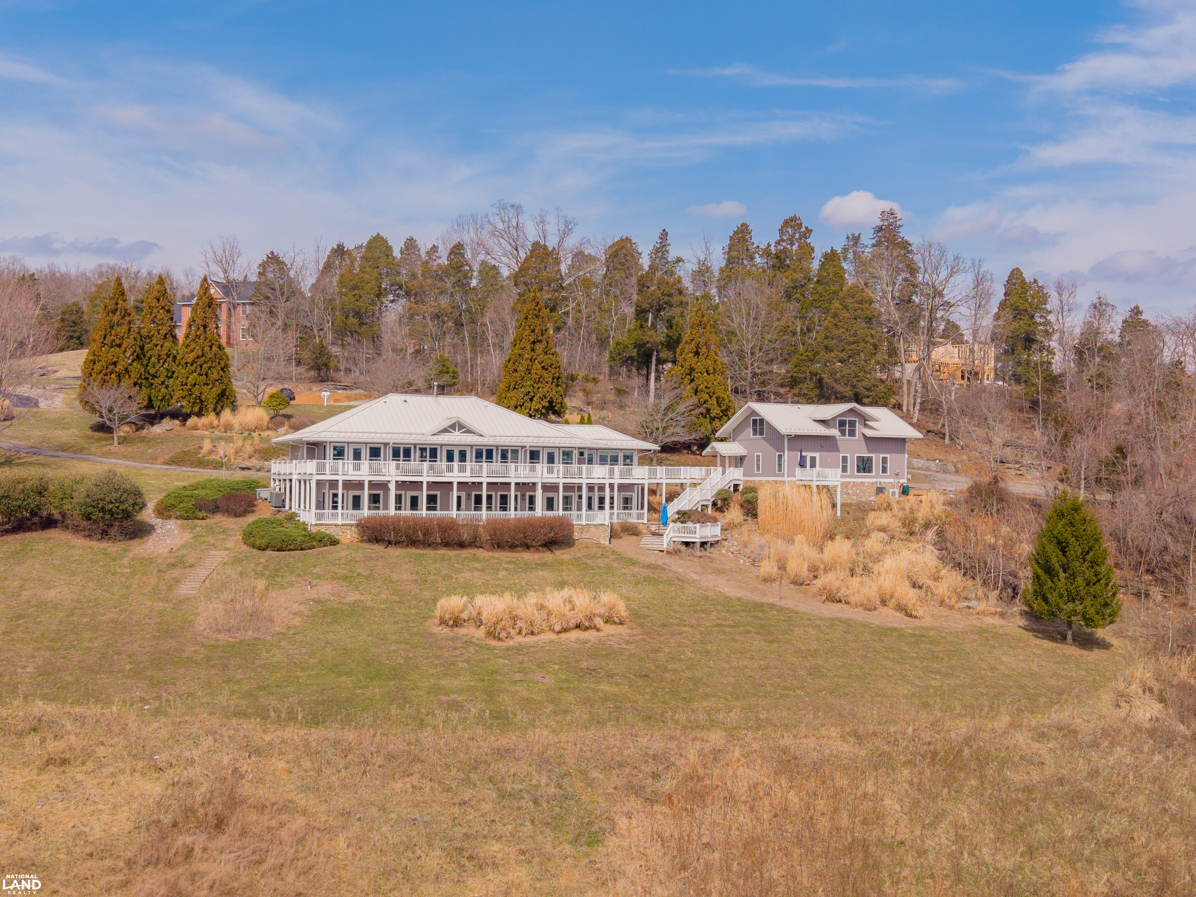 The 14+ acre property consists of two structures: The main house which features seven bedrooms, all with bathrooms attached; a the main dining room with commercial kitchen; and two lounging areas. The view is emphasized with large windows in every room, and plenty of parking in the circular driveway. The other structure has is a two story detached unit that has two bedrooms upstairs with a large living area downstairs. A fully renovated kitchen with with beautiful island for the families to gather. Lilly Valley Inn is perfect for any gathering, event, family reunion, etc.