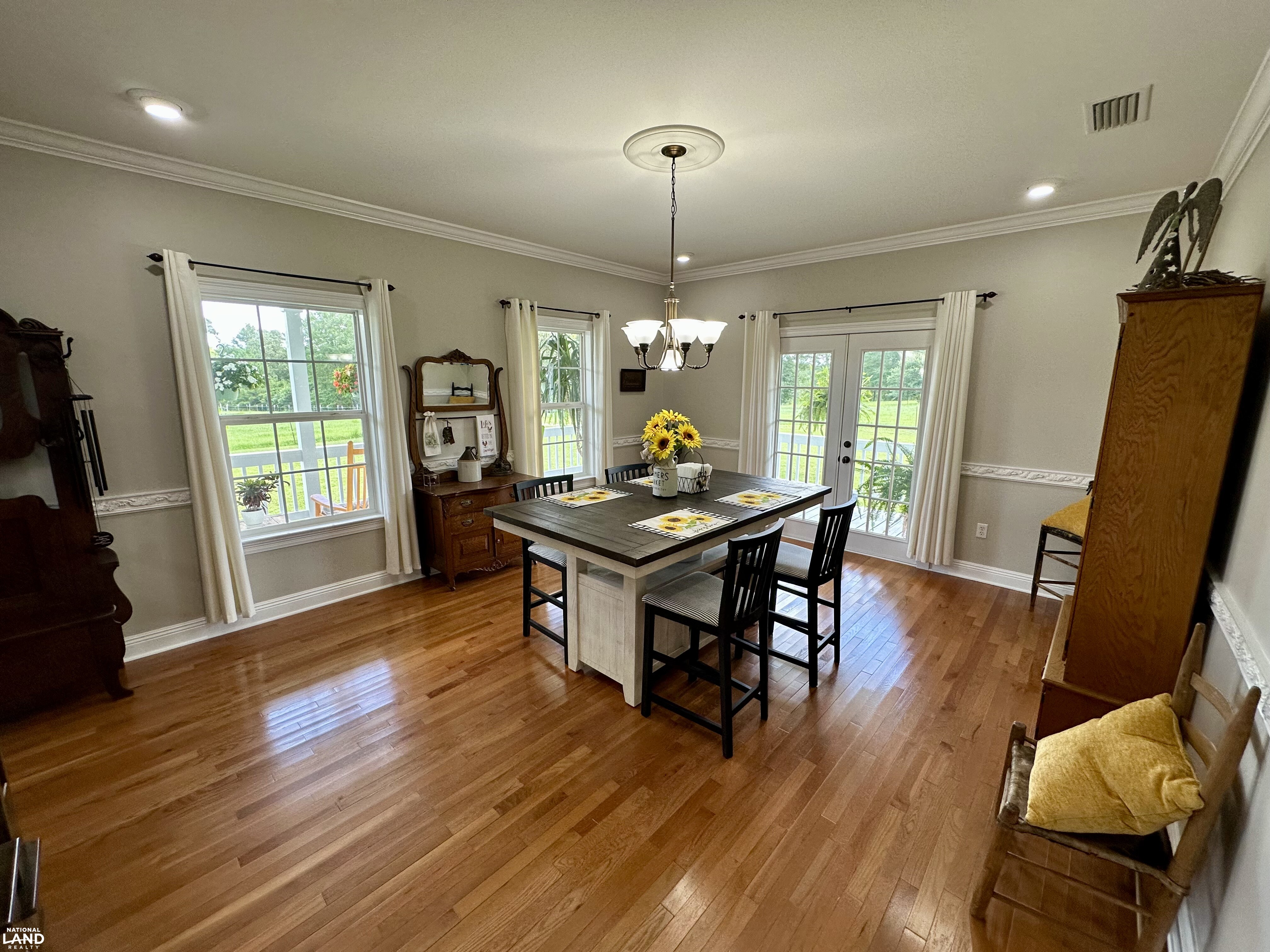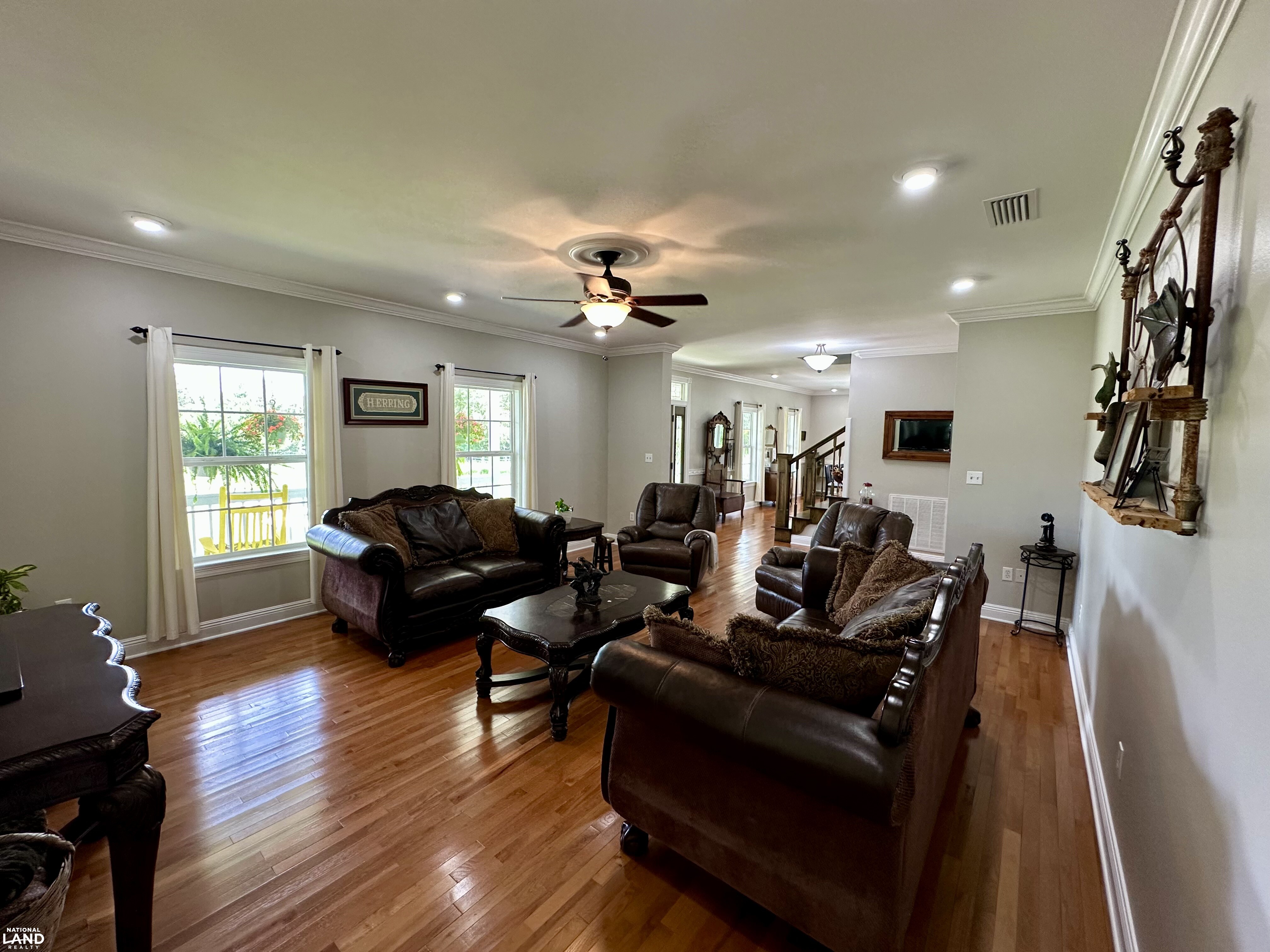 - Gently rolling hills, scenic pastureland, and mature red and live oaks