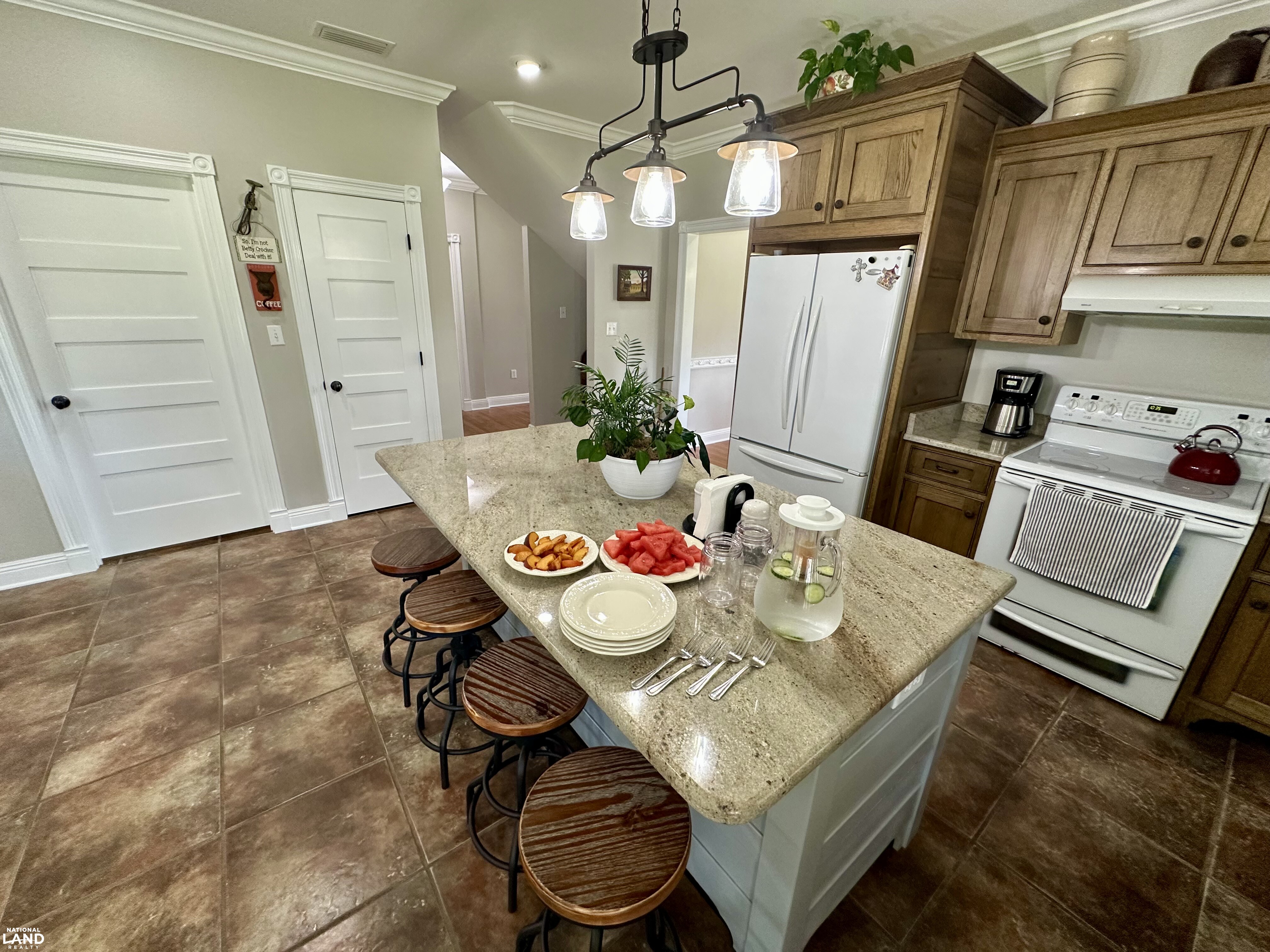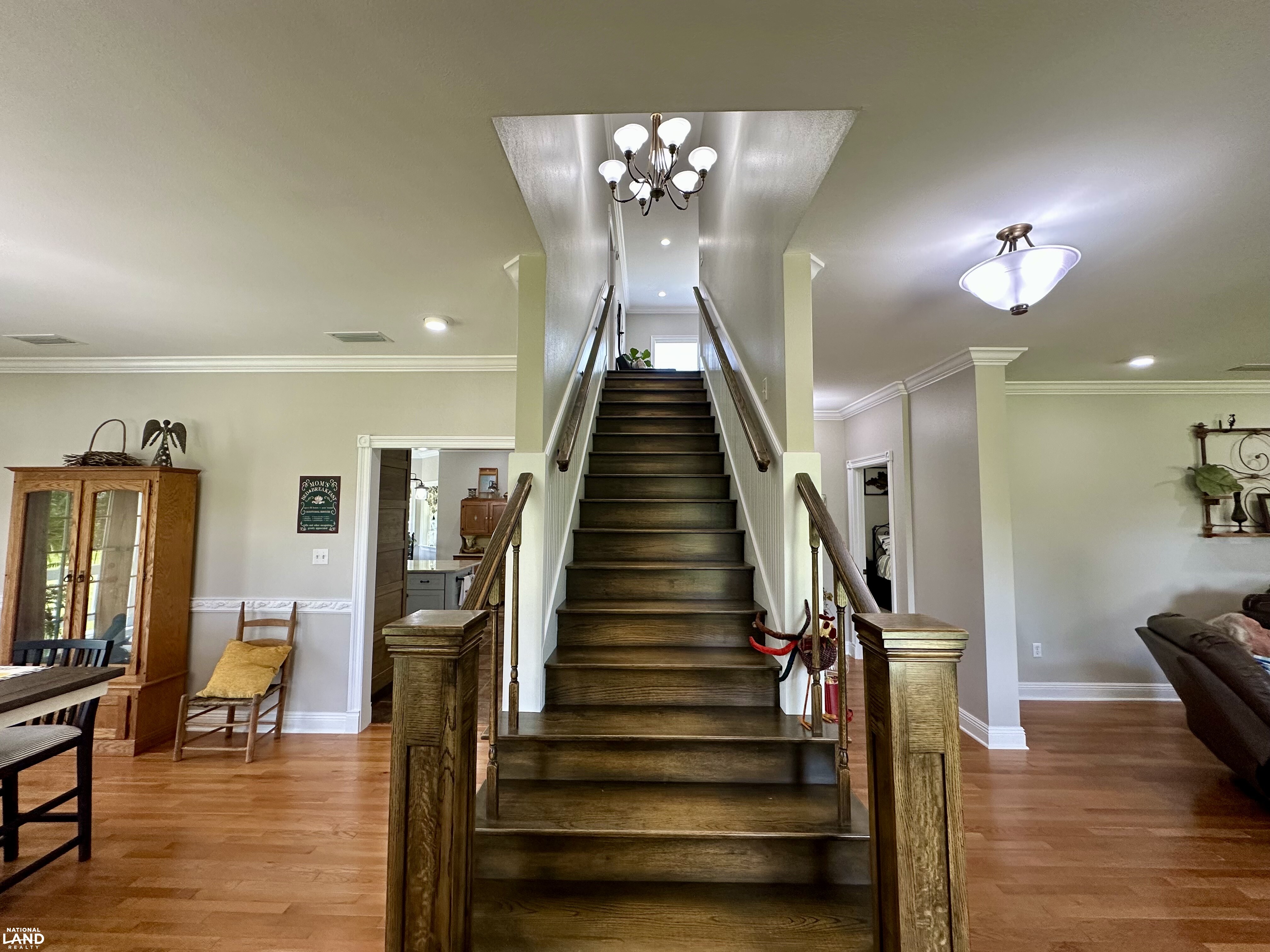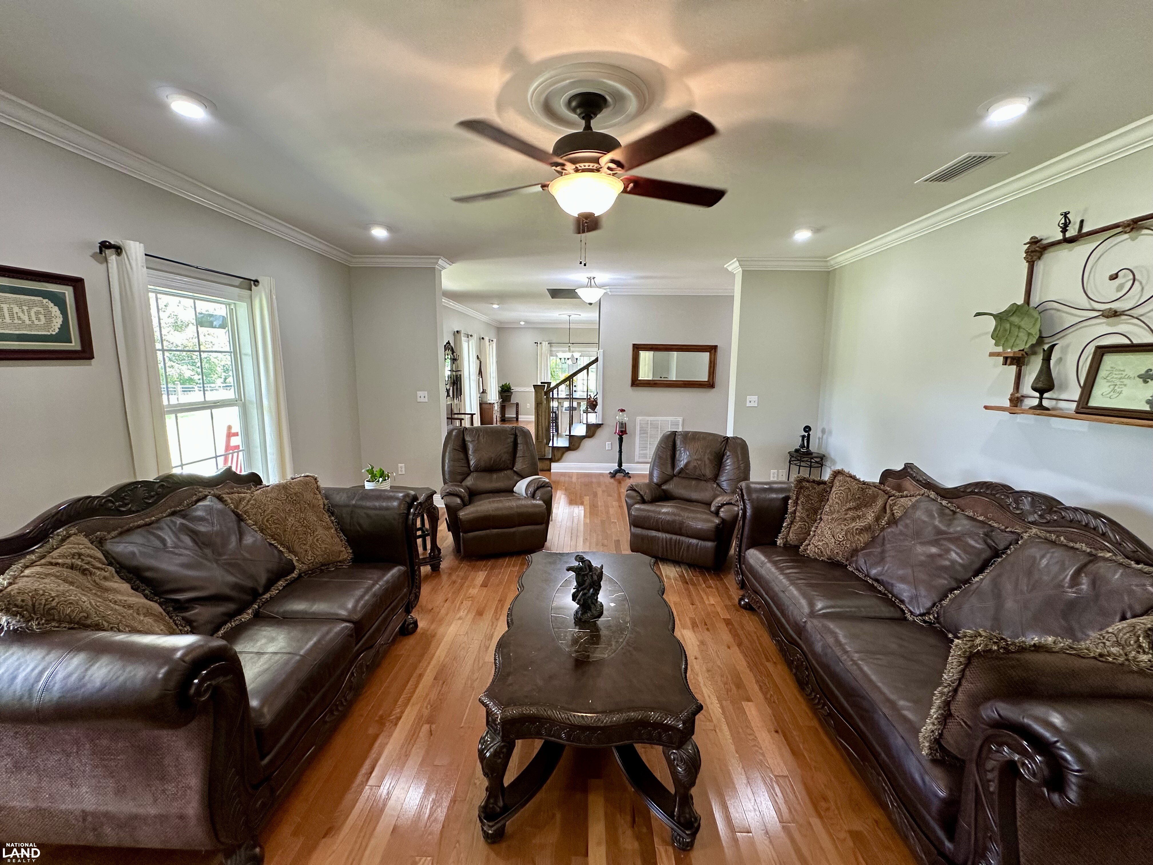 Step inside and you’ll immediately notice the craftsmanship underneath approximarly 3,065.69 +/- square feet of heated/cooled space - rich hardwood floors, solid wood custom doors, hand-built cabinetry, and thoughtful design touches throughout. The heart of the home is the spacious, open-concept kitchen featuring a large central island, farmhouse sink, custom cabinetry, and classic finishes that blend beauty with functionality. The living and dining areas offer views of the landscape and easy access to the wraparound porch - approximately 1,045.84 square feet under roof - that begs for morning coffee or evening sunsets.