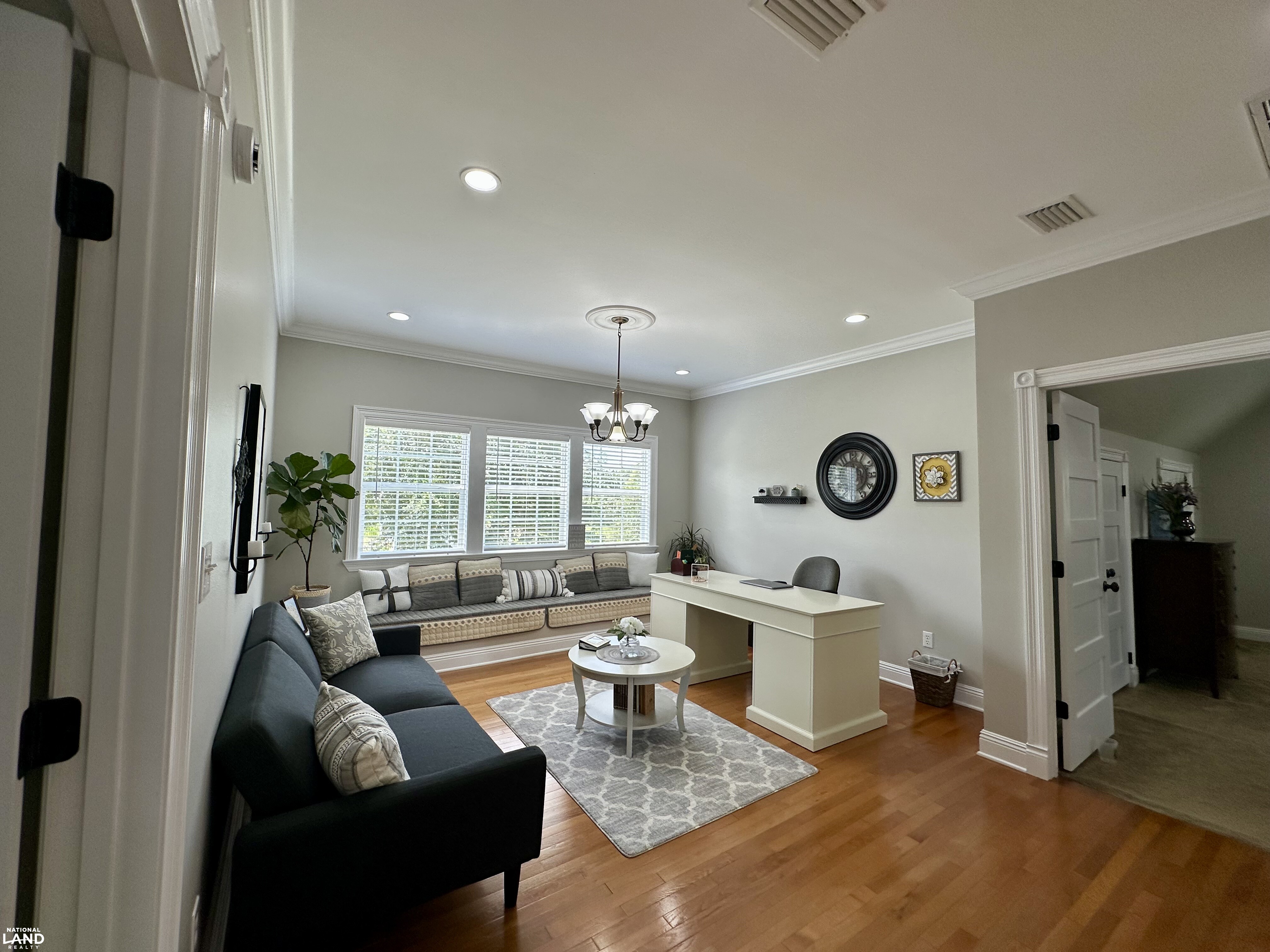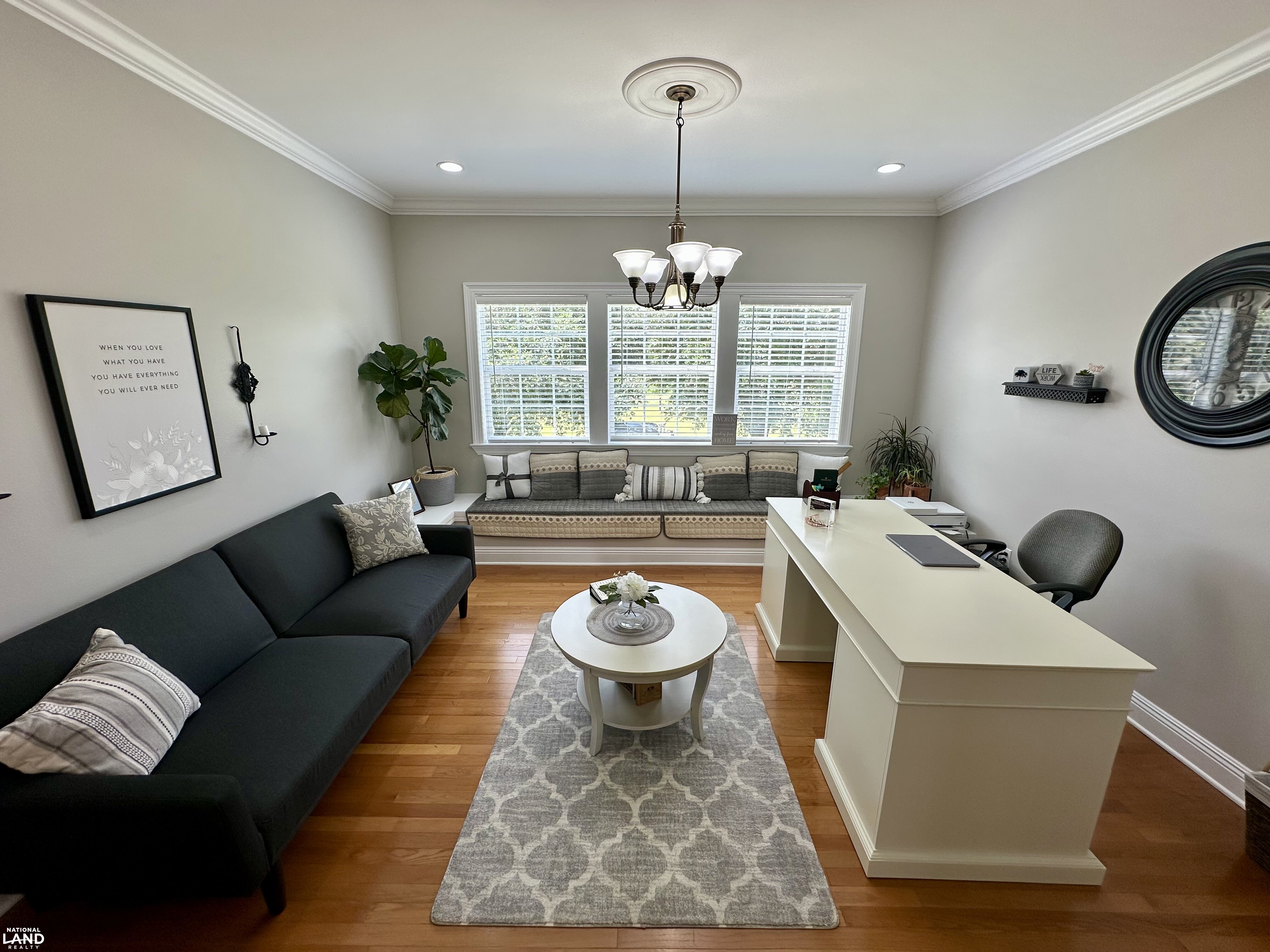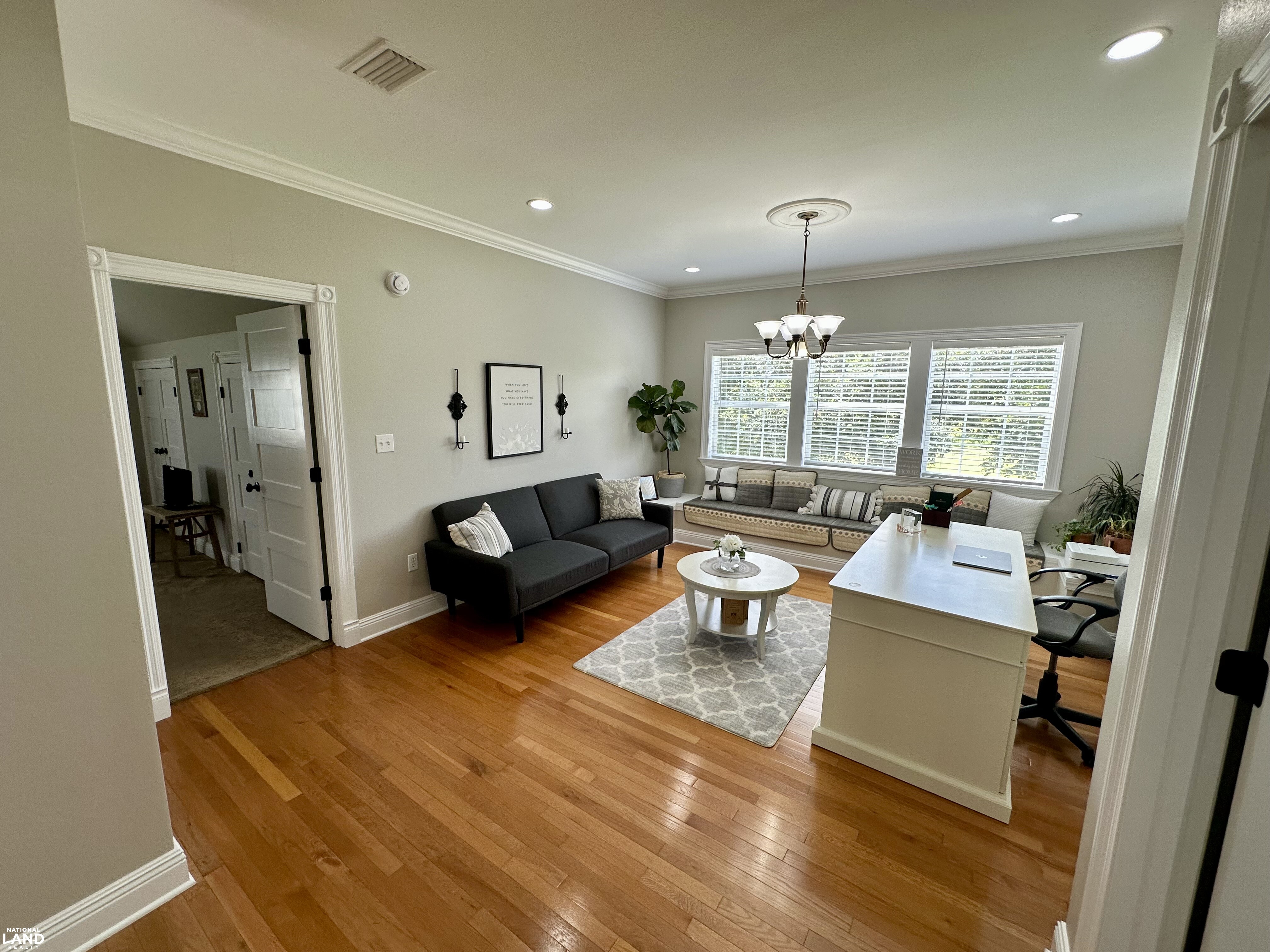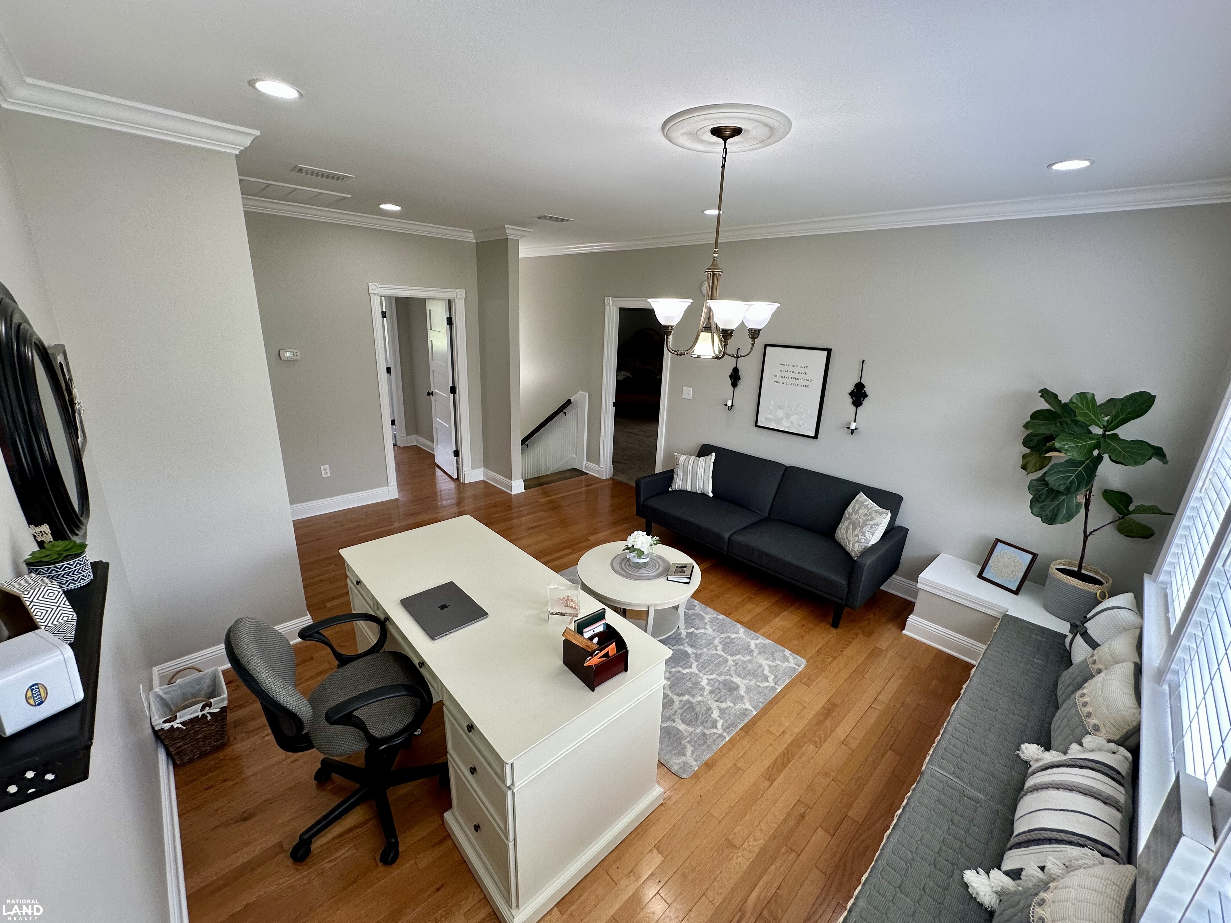 Upstairs, the staircase opens to a gorgeous loft-style office filled with natural light - perfect for working from home or a creative retreat. Just beyond are two symmetrical bedrooms on opposite sides of the hall, thoughtfully mirrored in design, and a full bath that completes the upper level.