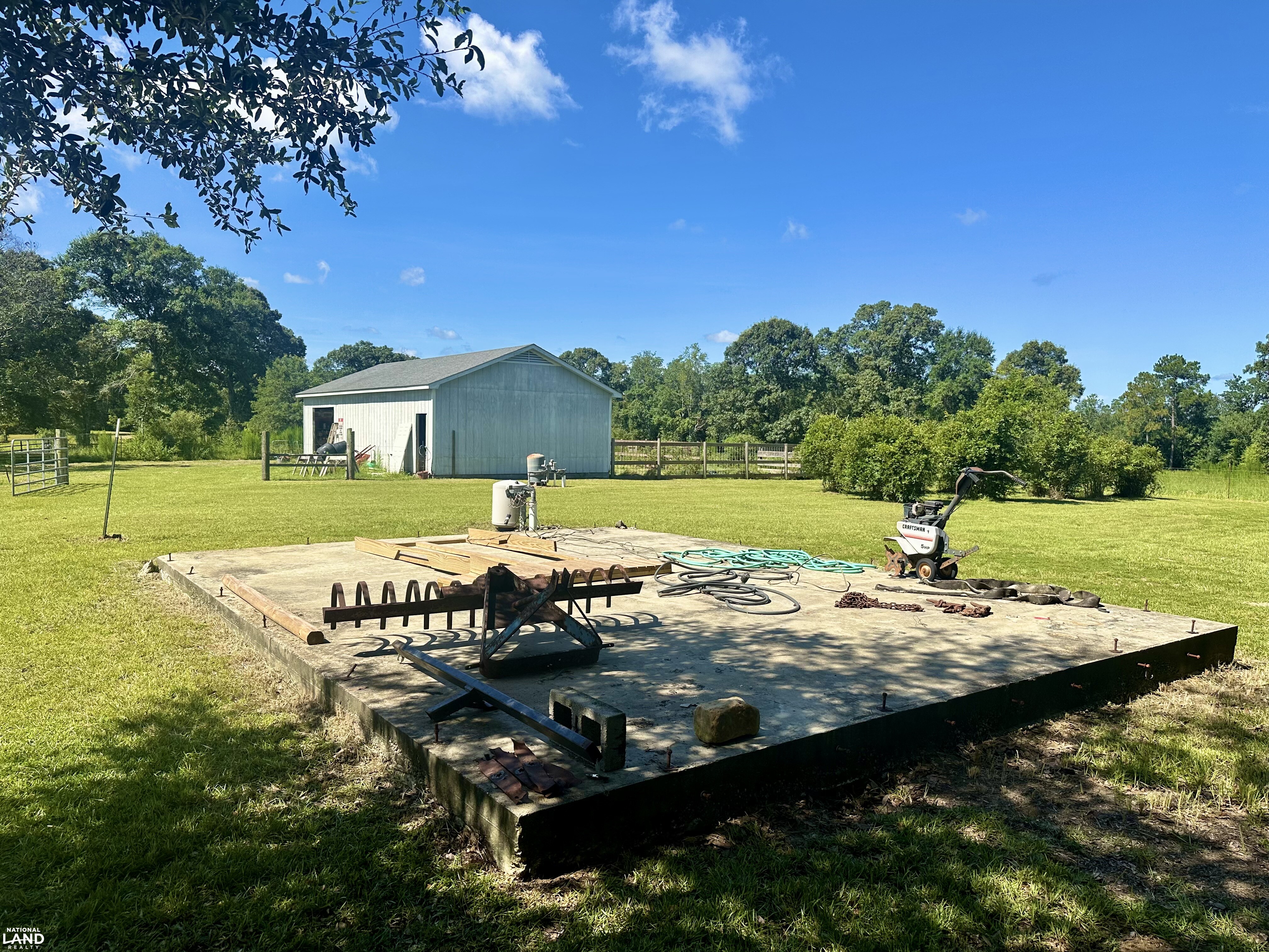 Outdoors, this former cattle ranch is ready to be revived or reimagined - with a functional shop, cattle catch pen, and ideal spots for a private pond or even a small lake. The walled-in shop is approximately 50' x 25', situated on a concrete slab, and features multiple doors including a garage door. One corner is already studded for plumbing, offering flexibility for future improvements. Additionally, a 25' x 20' concrete slab nearby provides the perfect foundation for a second shed, outdoor kitchen, or entertainment area.