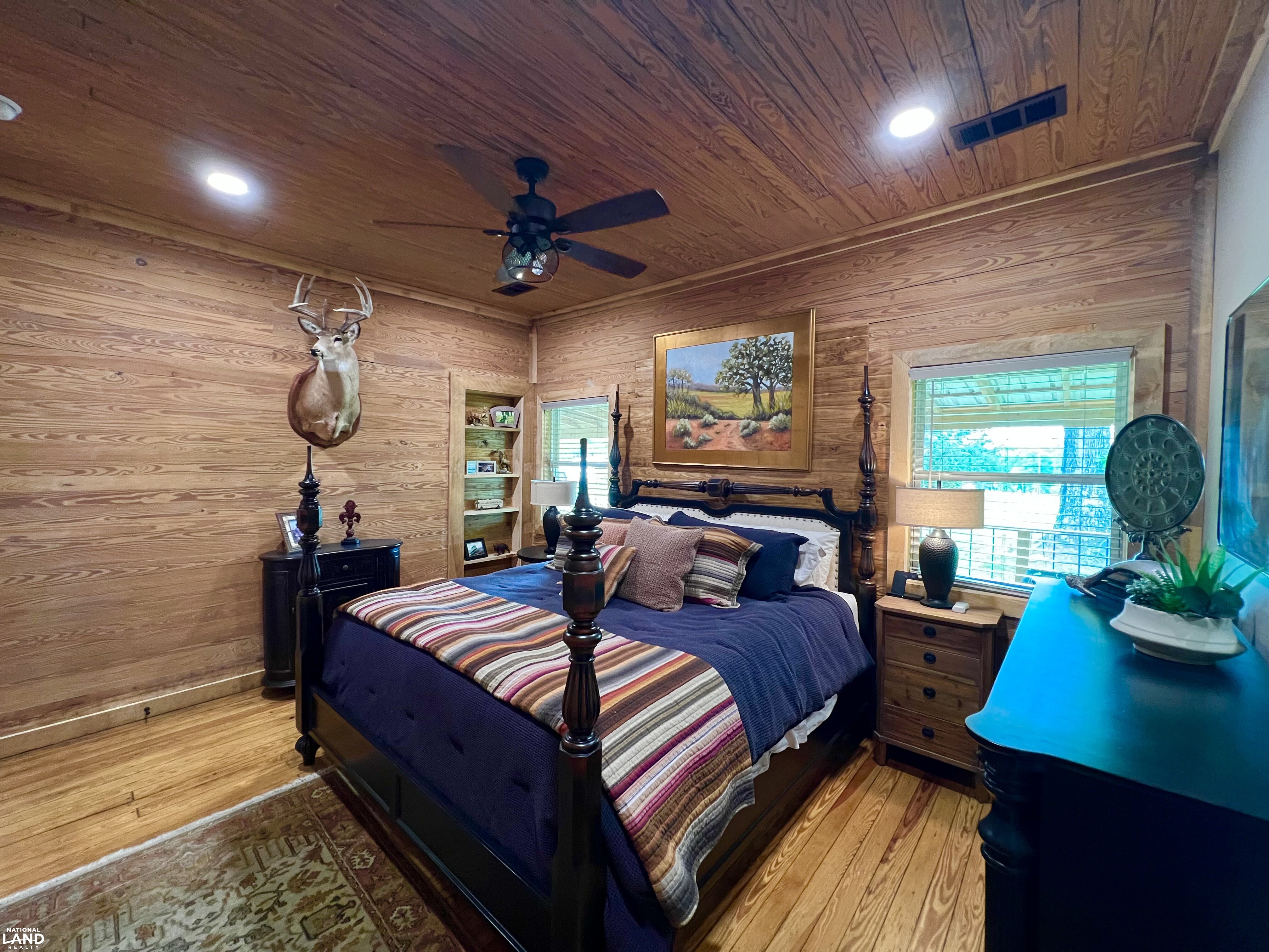 The lodge features a completely renovated, approximately 100-year-old historic camp house with all-new wiring, plumbing, a tankless hot water heater, new insulation throughout, and an HVAC system. Other features include a large covered rear porch with spectacular views and a stone fireplace. The interior boasts custom woodwork, including cedar and pine board-plank and shiplap walls, along with pine tongue-and-groove flooring. The exterior showcases rough-sawn cypress board-and-batten siding, a new tin roof, and a basement with ATV parking and storage. There is also an adjacent two-bay custom carport.