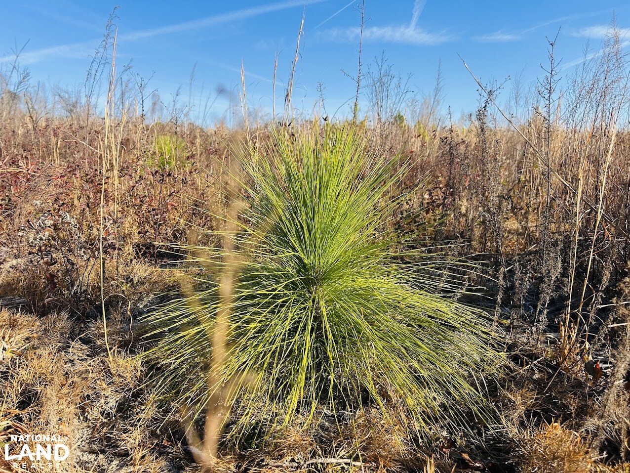 A well-maintained road system outlines much of the property, providing excellent access and making it easy to navigate. Multiple areas are suitable for a hunting lodge, campsite, or recreational setup, allowing the property to be customized to fit a variety of outdoor uses. Planted longleaf pines are established throughout the open areas, enhancing both the aesthetic and long-term value of the land.