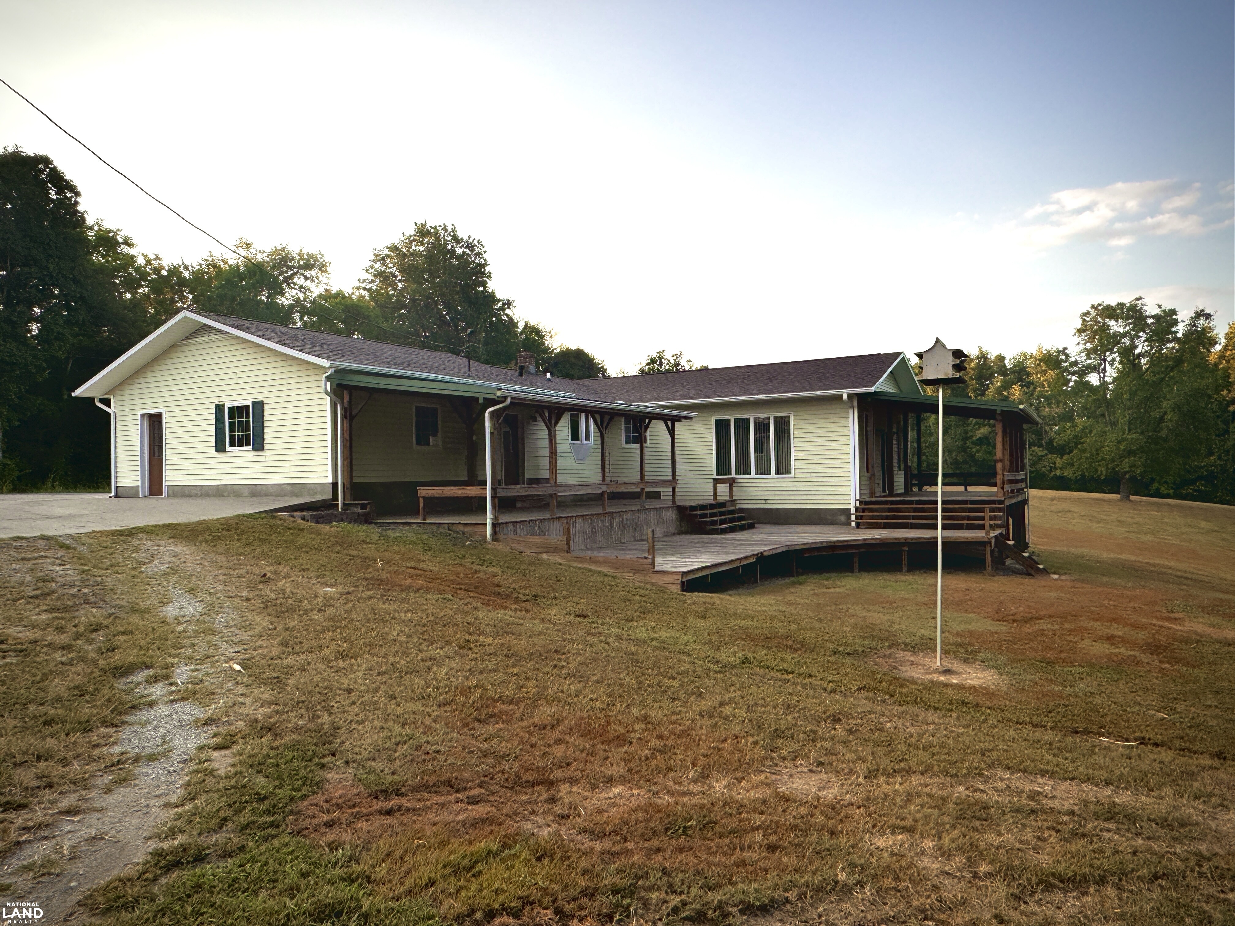 This 3-bed 2-bath house features 1884 sq feet of living space with an attached 676 sq ft 2-car garage with a complete concrete driveway. On the 2.17 acres, there is also a 24x54ft pole barn with electric and water. There is also a 12x20ft outbuilding with electric and water. The home also features over 1250 sq ft of decks with almost 1000 sq ft of that being covered. The house and outbuilding both have brand new roofs. The house has both city and well water with newer electric heating and air, and a wood-burning stove as well. Enjoy the peace and quiet of the country, sit on your back deck, and enjoy the local wildlife while still being within an hour from Cape Girardeau, MO, Sikeston, MO, Anna, IL, Carbondale, IL, Marion, IL, and Paducah KY and within three hours of St Louis MO, Nashville TN, Memphis TN, and Evansville IN.