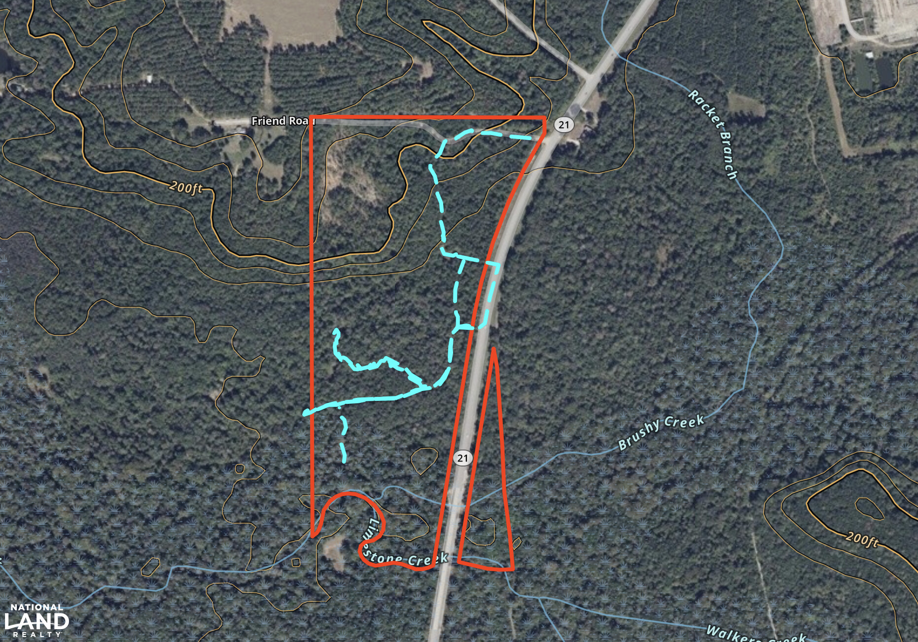 Limestone Creek, a wide sandy-bottom tributary of the Alabama River, forms the entire southern boundary of this tract, while Brushy Creek flows through the property for about 800 feet before joining it. The property was heavily thinned approximately 25 years ago and now supports mostly pulpwood-sized timber with larger trees scattered throughout, especially along the creeks and wet areas. The timber is a fairly even mix of pine and hardwood with a well-maintained road system running throughout the property. There are several small openings suitable for planting food plots, or a potential home or camp site. The terrain is mostly flat, with a single hill in the northwest corner. Conveniently located on Highway 21 between Monroeville and Peterman, the tract offers over half a mile of highway frontage and a quarter mile of frontage on Friend Drive, providing excellent access and utilities. This property offers strong potential for hunting, investment, or a future rural homestead. Call today to schedule a tour of this amazing opportunity!