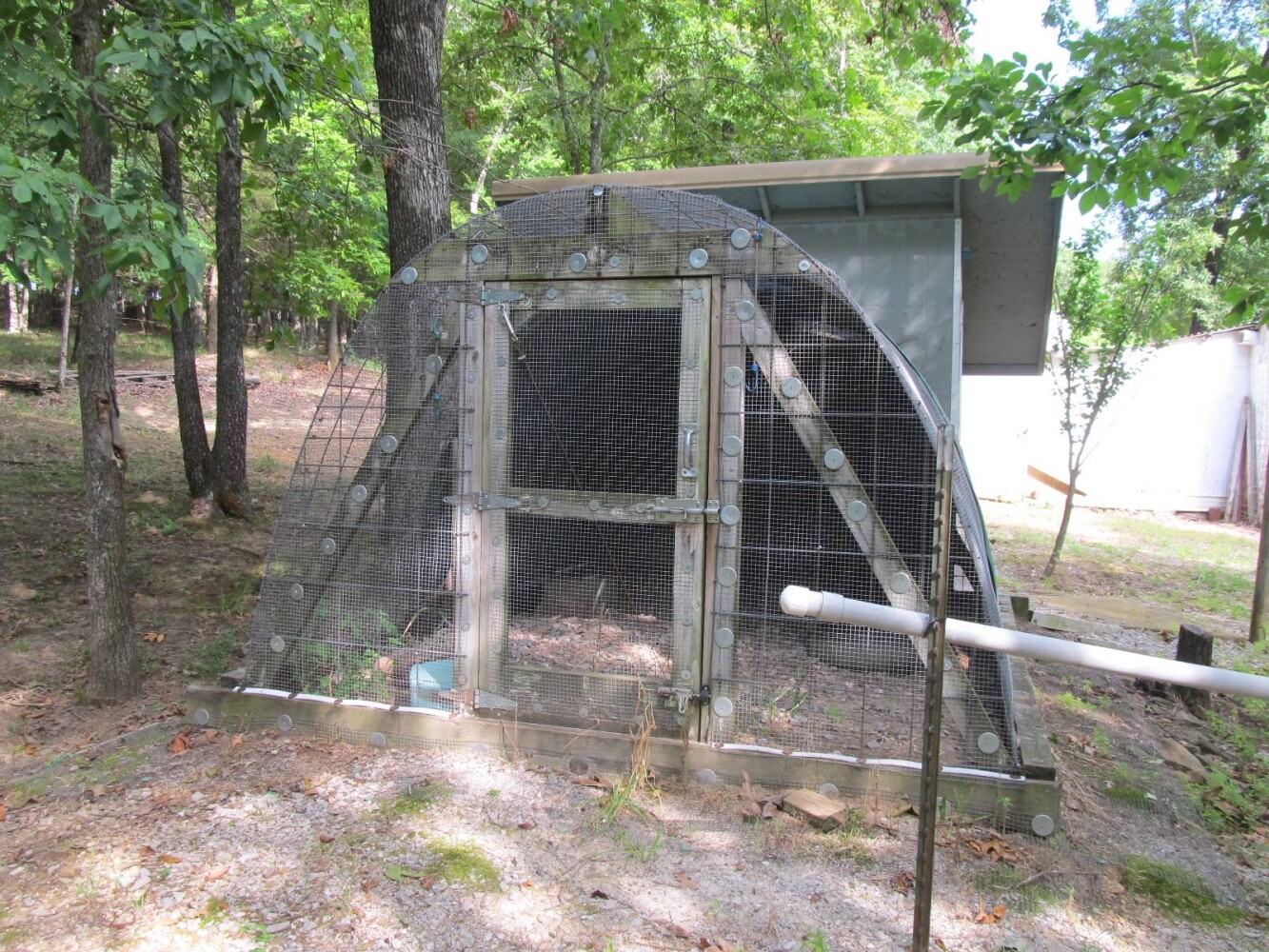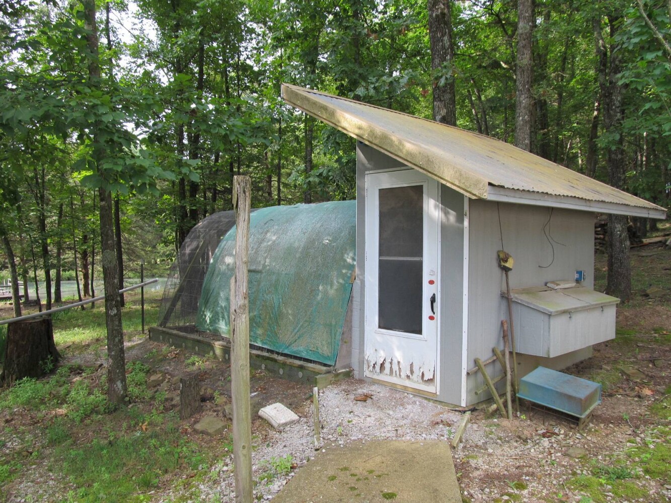 Unique Opportunity/Country Home on Private 13 Acres in NW Arkansas Discover this rural Country Retreat with a Home and Numerous Outbuildings on 13+/- acres of land surrounded by trees in the Ozarks. This property provides unmatched privacy and tranquility. The 3-bedroom, 2-bath home is nestled in the center of the property, ensuring your privacy. The large living area is perfect for family enjoyment, featuring display shelves for collectibles or trophies. The kitchen area is very spacious, with custom oak cabinets, stainless steel sink and tile flooring. Appliances convey including a Frigidaire range w/vent , Bosch Dishwasher and Samsung Fridge. The Master Bedroom features a discrete closet for valuables, a secondary bedroom includes custom cabinets perfect for sewing projects. Utility area with Washer and Dryer that convey with sale. The attached 2-car garage is equipped with an automatic doors. Home has central heat and air, a wood stove, and a gas water heater. Water is provided by gravity flow from a developed spring to two large concrete holding tanks, offering a reliable and clean natural water source. Outdoor enjoyment is highlighted once you step out on the large screened-in porch with ceiling fans. Nearby pond complete with a fishing dock. A 40x32 3-bay shed is perfect for storing your boat, RV, or toy hauler, with 2 bays offering 16' clearance. For those who enjoy projects, the property includes an insulated 24x30 shop with a 10' door with window A/C unit, wood stove, and concrete floor. This building has a 100-amp main circuit with many 110 and 220 outlets, as well as numerous shelves and cabinets. Also on the property is an insulated and vented chicken house perfect for your backyard flock, complete with a fenced chicken yard for protection and convenient egg-gathering nests. Two locally sourced Apple trees and fenced garden spot has the possibility to provide lots of fruit and veggies. For storm protection, the home features a 300 sq ft concrete bunker equipped with a heat and A/C unit, toilet, shower, and sink. With a 500-gallon propane tank and Generac generator, this property is set up to be self-sufficient for an extended period. Property is located Southeast of Huntsville Arkansas in the Wharton Creek Area of Madison County. Access to kayaking the Buffalo River or Hiking Hawksbill Crag, Lost Valley or Sweden Creek Falls are within 45 minutes. Northwest Arkansas offers many opportunities....This Property is Agent Owned.. Don't miss out on this unique chance to own a slice of rural southern paradise. Property is priced at $379,000
