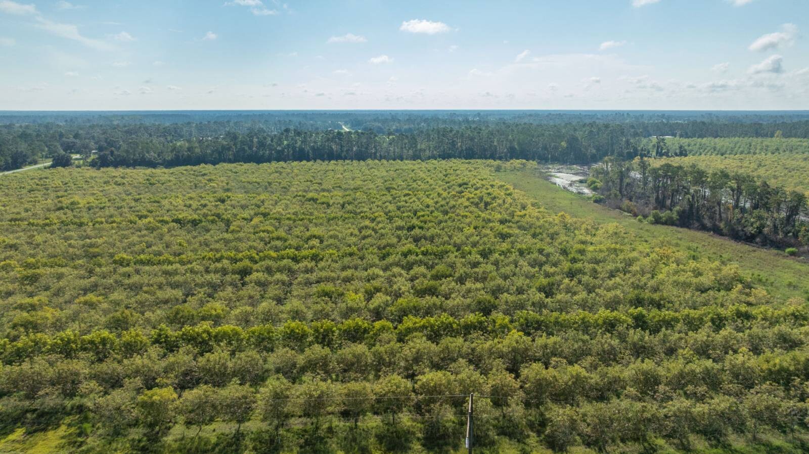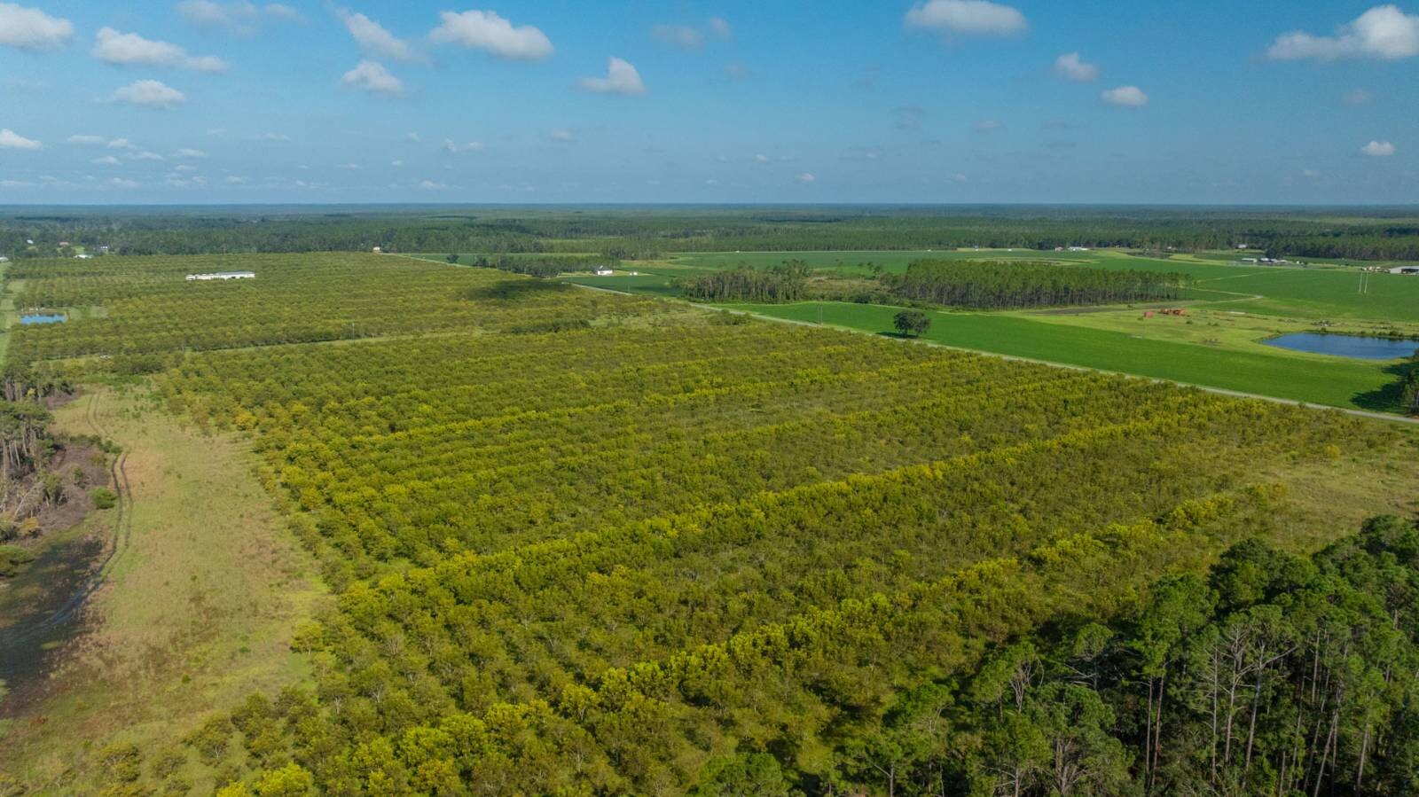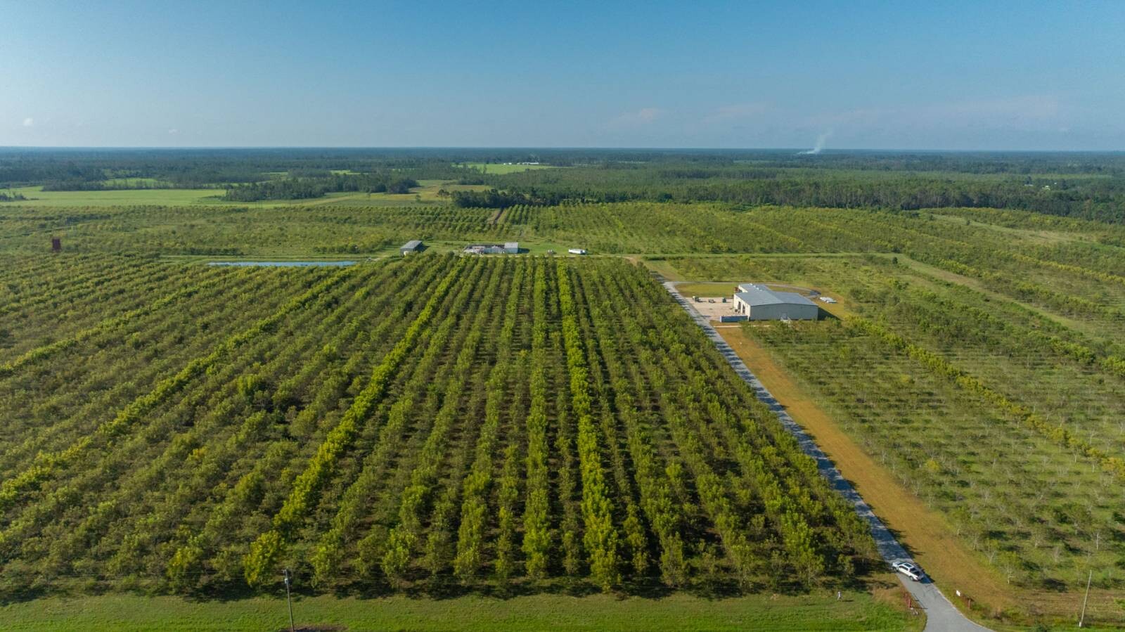 Introducing the O'Brien Orchard, 323± acres of premium irrigated pecans and investment-grade farmland located in Lanier County, Georgia. This exceptional property combines production, infrastructure, and location in one rare offering. With 242± acres of pecans planted in 2016 and 2017, featuring Creek and Desirable (pollinator) varieties on 20' x 20' spacing, this operation is designed for long-term success. The orchard is irrigated by a 10" electric deep well and a two-zone Micro Jet system, with a unique 6" drain tile system installed every 60 feet to support outstanding drainage and soil health. A state-of-the-art 13,600± SF pecan cleaning plant with 120,000 lb drying bins, 40,000 lb/day capacity, enclosed office, storage, and loading docks, along with additional open equipment barns, make this a true turn-key operation. Located on Darsey Road and GA Highway 31, the property offers strong future growth potential, beautiful homesite appeal, and recreational value, with prime hunting opportunities and extensive road frontage.