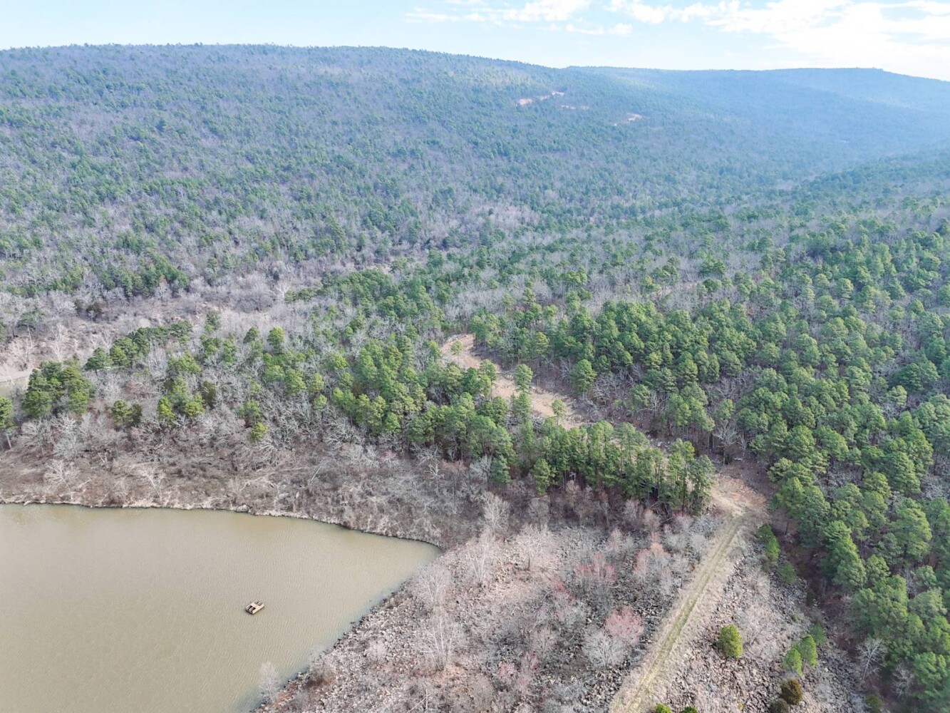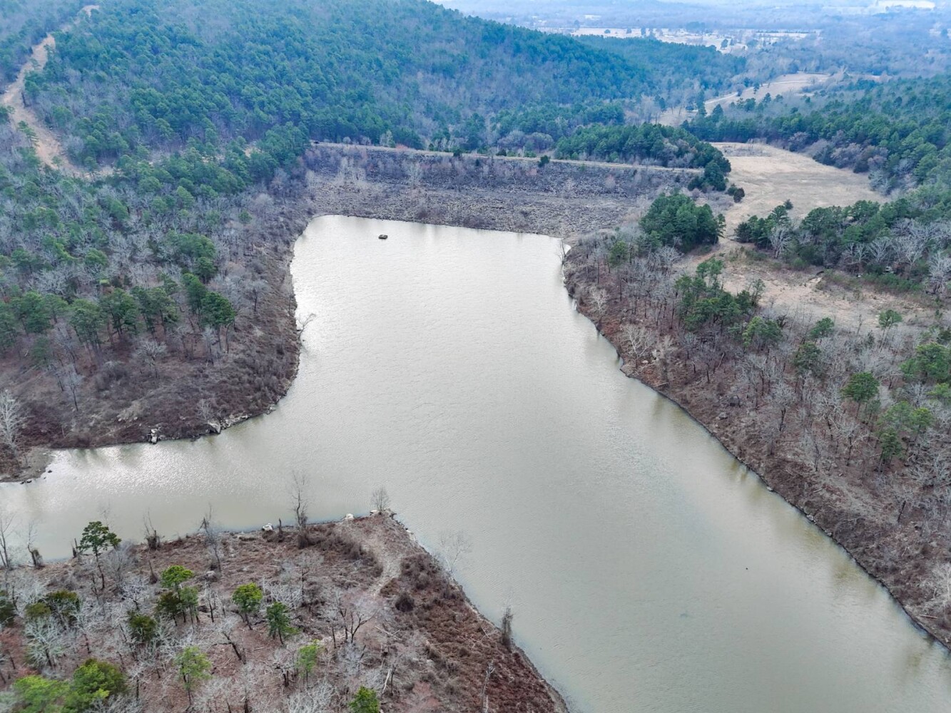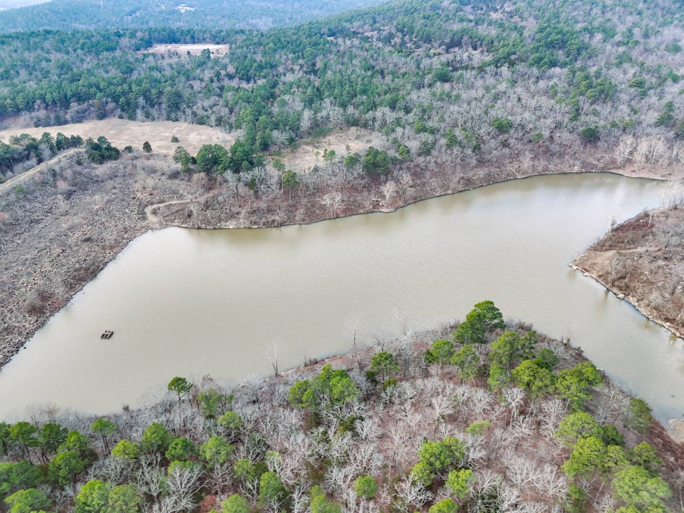 This exceptional 2,942-acre ± recreational property in Latimer County offers a rare combination of mountain terrain, mature timber, abundant water, new road infrastructure makes for easy access to major points within the ranch. With direct access off Highway 270, the property is easily accessible while still providing the privacy and seclusion buyers seek in a large recreational ranch. A new modular home with utilities in place, rural water is provided by Latimer County Rural Water District #1 with a meter in place and electricity through kiamichi Electric cooperative. The property provides a comfortable home site, weekend retreat or extended stays. Located in the scenic San Bois Mountain range of Southeast Oklahoma near the town of Wilburton, this property sits in one of the most historic and naturally beautiful regions of the state. Wilburton, the county seat of Latimer County, offers small-town charm, local businesses, and outdoor recreation, and is also home to Eastern Oklahoma State College. Nearby Robbers Cave State Park is well known for its striking rock formations, hiking trails, horseback riding, and seasonal trout fishing. The land itself features dramatic elevation changes ranging from approximately 700 feet along Fourche Maline Creek to over 1,700 feet on the mountain ridges, creating breathtaking panoramic views across the surrounding valleys. The property is heavily timbered with mature oak, pine, and hickory forests, providing ideal wildlife habitat and a true mountain landscape. For hunters and outdoor enthusiasts, this property is outstanding. The ranch supports strong populations of whitetail deer, black bear, eastern wild turkey, and wild hogs. Small game such as rabbit and squirrel are plentiful, along with predators including bobcat, fox, and coyote. The property's diverse terrain, thick bedding cover, and established travel corridors make it an exceptional big game hunting tract. Water resources are abundant throughout the property. Fourche Maline Creek, a year-round live creek, runs through the ranch providing a reliable water source for wildlife. Several ponds are located across the property. One of the property's most unique features is a 80% ownership interest in a 20-acre lake on Fourche Maline Creek. The lake was created by an impressive 88-foot-high and 1,199-foot-long earthen dam and offers excellent fishing for largemouth bass, catfish, and bluegill, as well as outstanding duck hunting opportunities. With easy access across the rolling terrain, through timbered hillsides, and into open clearings that create ideal wildlife habitat and hunting setups. With its combination of size, mountain views, water features, established access, exceptional hunting and development potential this property represents a rare opportunity to own a large recreational ranch in the beautiful San Bois Mountains of Southeast Oklahoma.