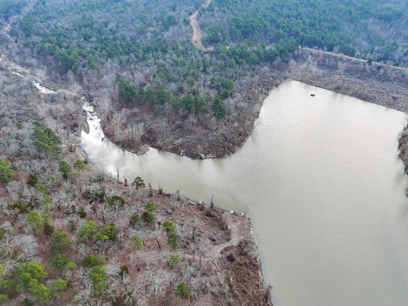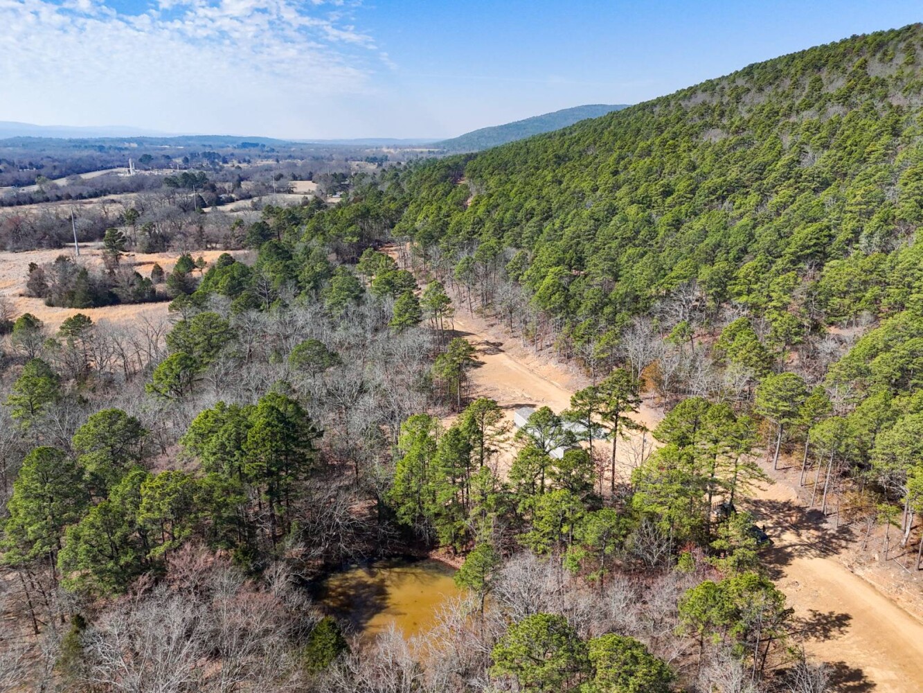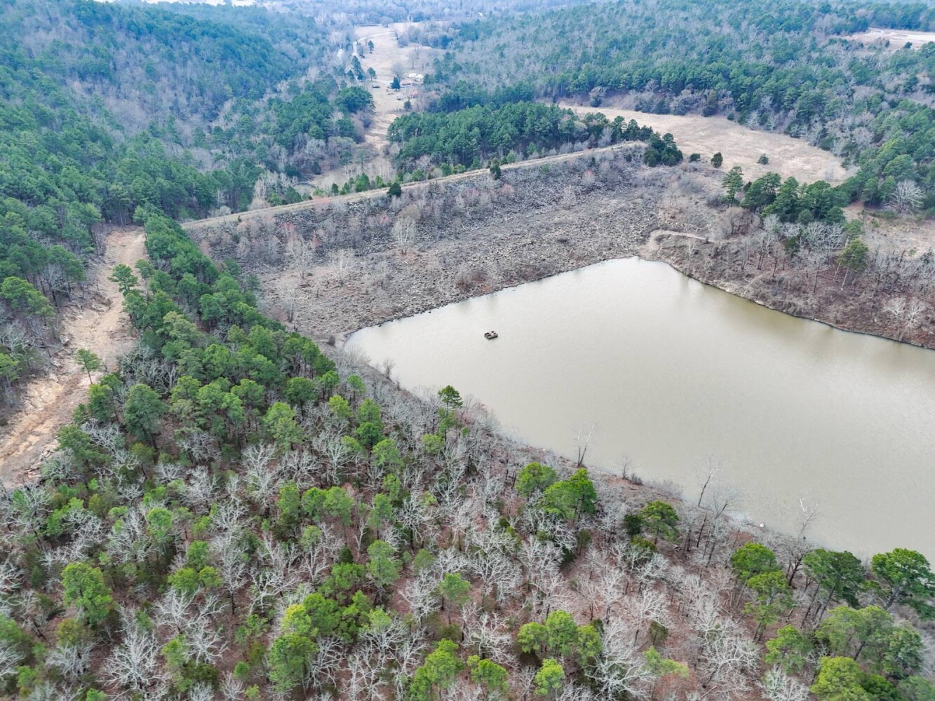This exceptional 2,942-acre ± recreational property in Latimer County offers a rare combination of mountain terrain, mature timber, abundant water, new road infrastructure makes for easy access to major points within the ranch. With direct access off Highway 270, the property is easily accessible while still providing the privacy and seclusion buyers seek in a large recreational ranch. A new modular home with utilities in place, rural water is provided by Latimer County Rural Water District #1 with a meter in place and electricity through kiamichi Electric cooperative. The property provides a comfortable home site, weekend retreat or extended stays. Located in the scenic San Bois Mountain range of Southeast Oklahoma near the town of Wilburton, this property sits in one of the most historic and naturally beautiful regions of the state. Wilburton, the county seat of Latimer County, offers small-town charm, local businesses, and outdoor recreation, and is also home to Eastern Oklahoma State College. Nearby Robbers Cave State Park is well known for its striking rock formations, hiking trails, horseback riding, and seasonal trout fishing. The land itself features dramatic elevation changes ranging from approximately 700 feet along Fourche Maline Creek to over 1,700 feet on the mountain ridges, creating breathtaking panoramic views across the surrounding valleys. The property is heavily timbered with mature oak, pine, and hickory forests, providing ideal wildlife habitat and a true mountain landscape. For hunters and outdoor enthusiasts, this property is outstanding. The ranch supports strong populations of whitetail deer, black bear, eastern wild turkey, and wild hogs. Small game such as rabbit and squirrel are plentiful, along with predators including bobcat, fox, and coyote. The property's diverse terrain, thick bedding cover, and established travel corridors make it an exceptional big game hunting tract. Water resources are abundant throughout the property. Fourche Maline Creek, a year-round live creek, runs through the ranch providing a reliable water source for wildlife. Several ponds are located across the property. One of the property's most unique features is a 80% ownership interest in a 20-acre lake on Fourche Maline Creek. The lake was created by an impressive 88-foot-high and 1,199-foot-long earthen dam and offers excellent fishing for largemouth bass, catfish, and bluegill, as well as outstanding duck hunting opportunities. With easy access across the rolling terrain, through timbered hillsides, and into open clearings that create ideal wildlife habitat and hunting setups. With its combination of size, mountain views, water features, established access, exceptional hunting and development potential this property represents a rare opportunity to own a large recreational ranch in the beautiful San Bois Mountains of Southeast Oklahoma.