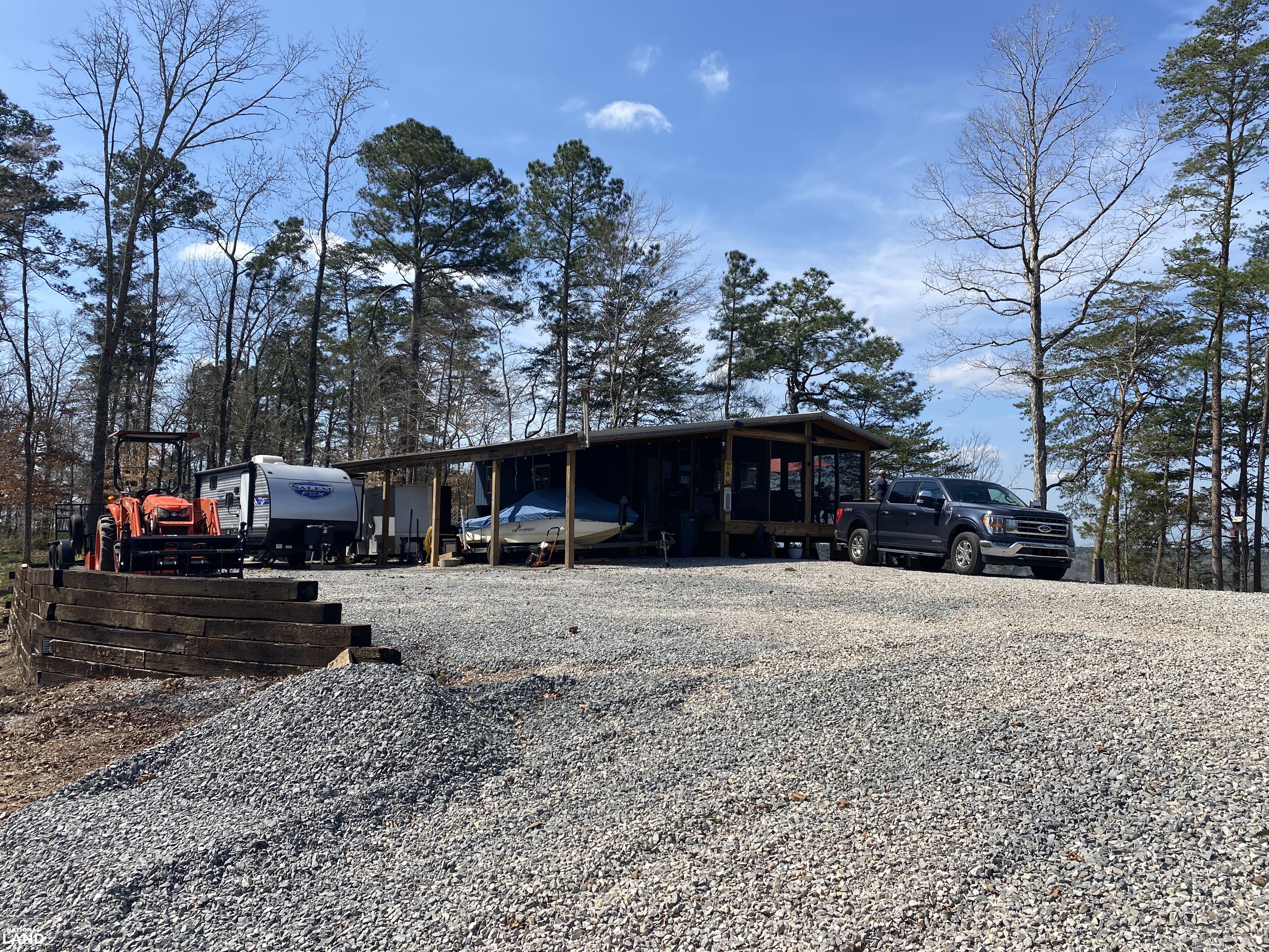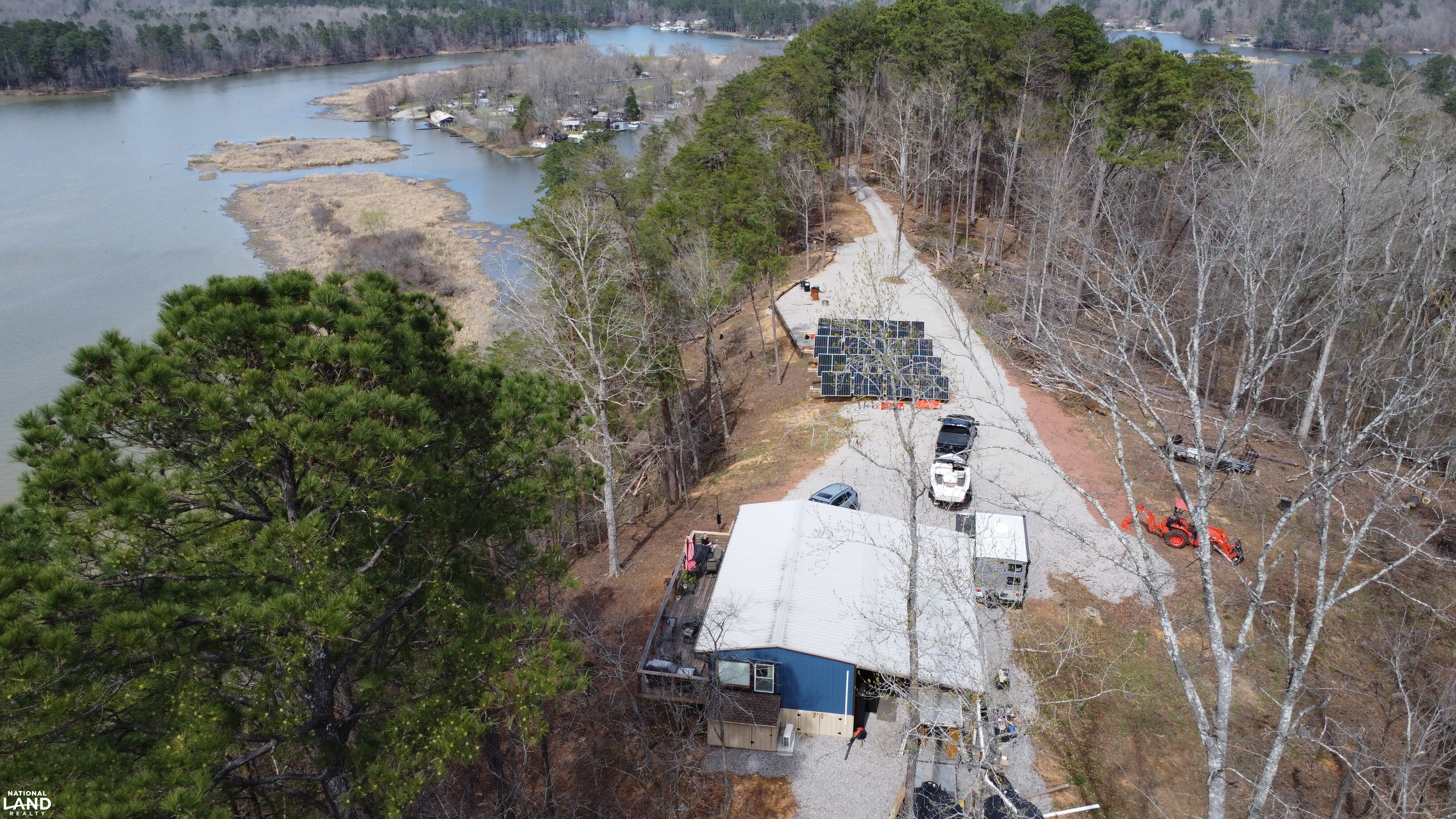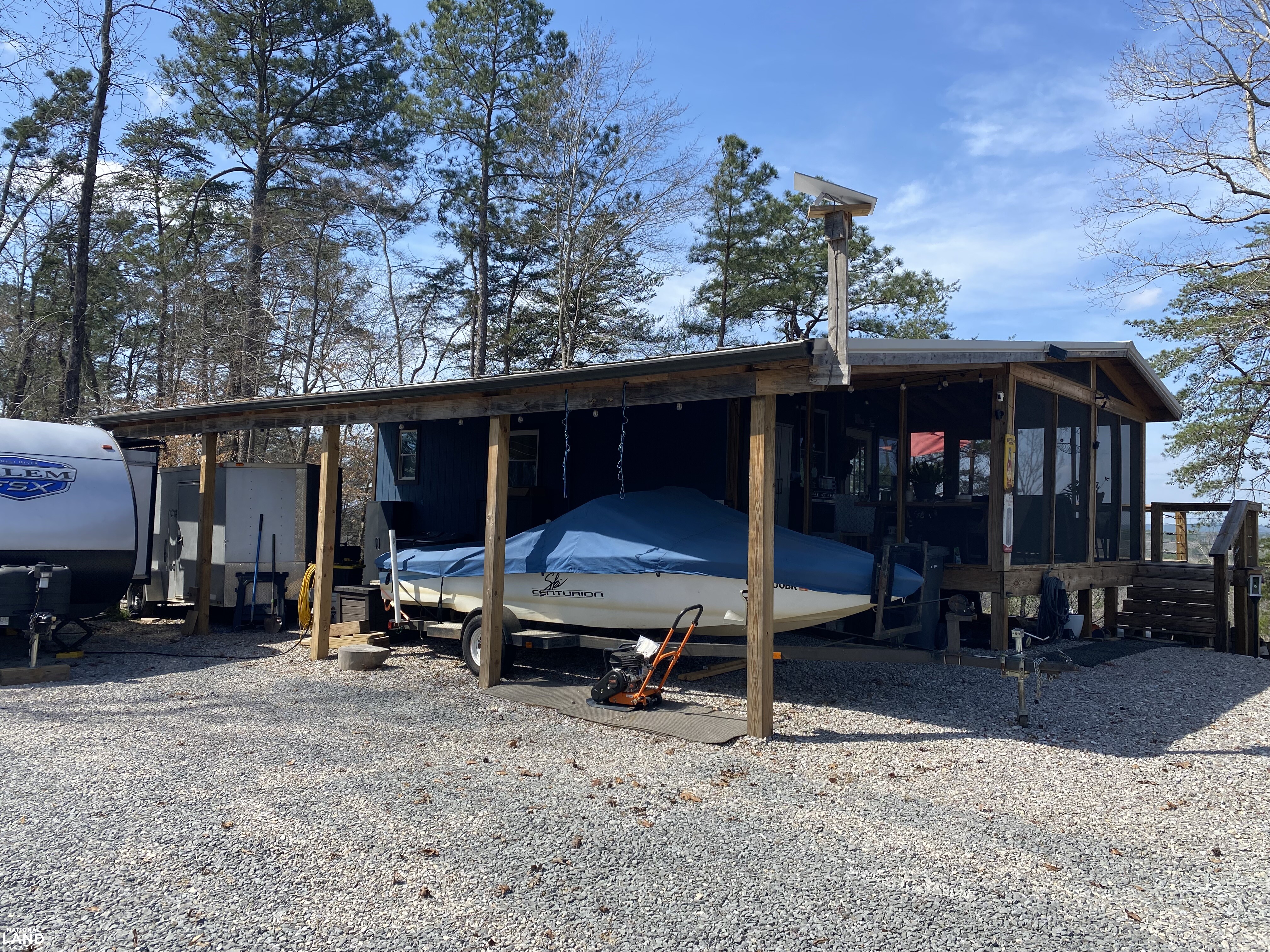 On the head waters of the Black Warrior River with a view of the Mulberry Fork & Locust Fork Rivers convergence you can escape to this stunning +/-42-acre off-grid retreat offering the perfect blend of privacy, sustainability, and natural beauty. Enjoy approximately 2,000 feet of frontage along the Mulberry Fork, with breathtaking views and direct access to boating, swimming, and fishing. A public boat ramp is located less than a quarter mile away for added convenience. The cabin offers a spacious deck perfect for entertaining or relaxing while taking in both sunrise and sunset views, along with a cozy screened-in porch. The land is covered in mature timber and features scenic trails ideal for walking or riding ATVs. Multiple elevated homesites provide incredible river views, and with 42 acres, the property offers excellent potential for subdivision or a family compound. A slough on the property presents a prime location for a future pier. This unique property features a solar-powered cabin equipped with an impressive 32-panel (450W each) solar array producing up to 12,000 watts, supported by a 45,000-watt battery bank. A rainwater collection system with two 1,500-gallon tanks provides up to 30,000 gallons annually, creating a truly self-sufficient lifestyle. Additional features include a 30-amp RV hookup with water access, and nearby county road utilities (water, power, and sewer) if desired. Conveniently located less than 40 minutes from Birmingham and approximately one hour from Tuscaloosa, this rare property offers seclusion without sacrificing accessibility.