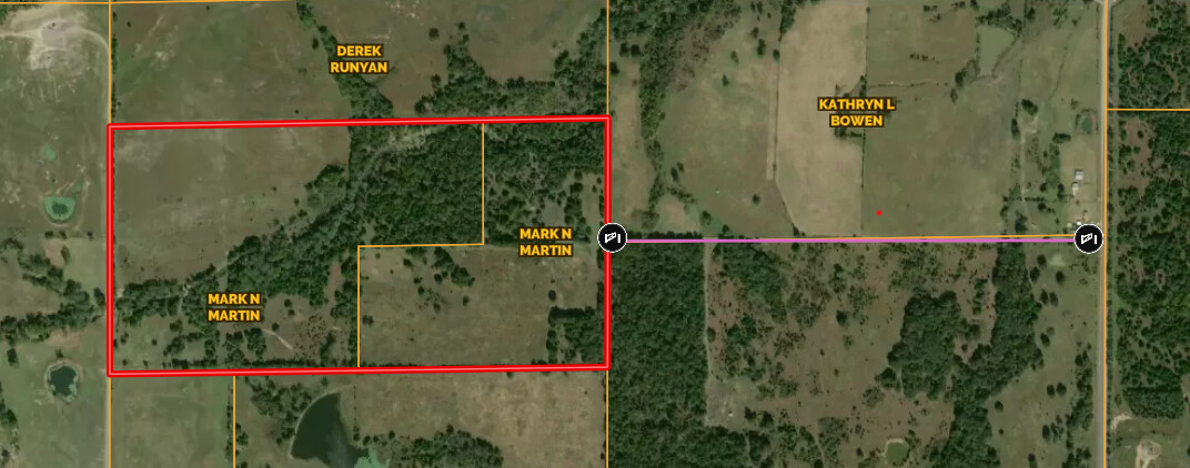 Electric and Rural water are 1/2 mile away and would need a signed easement to bring them in. First photo indicates Easement Rd in Purple.