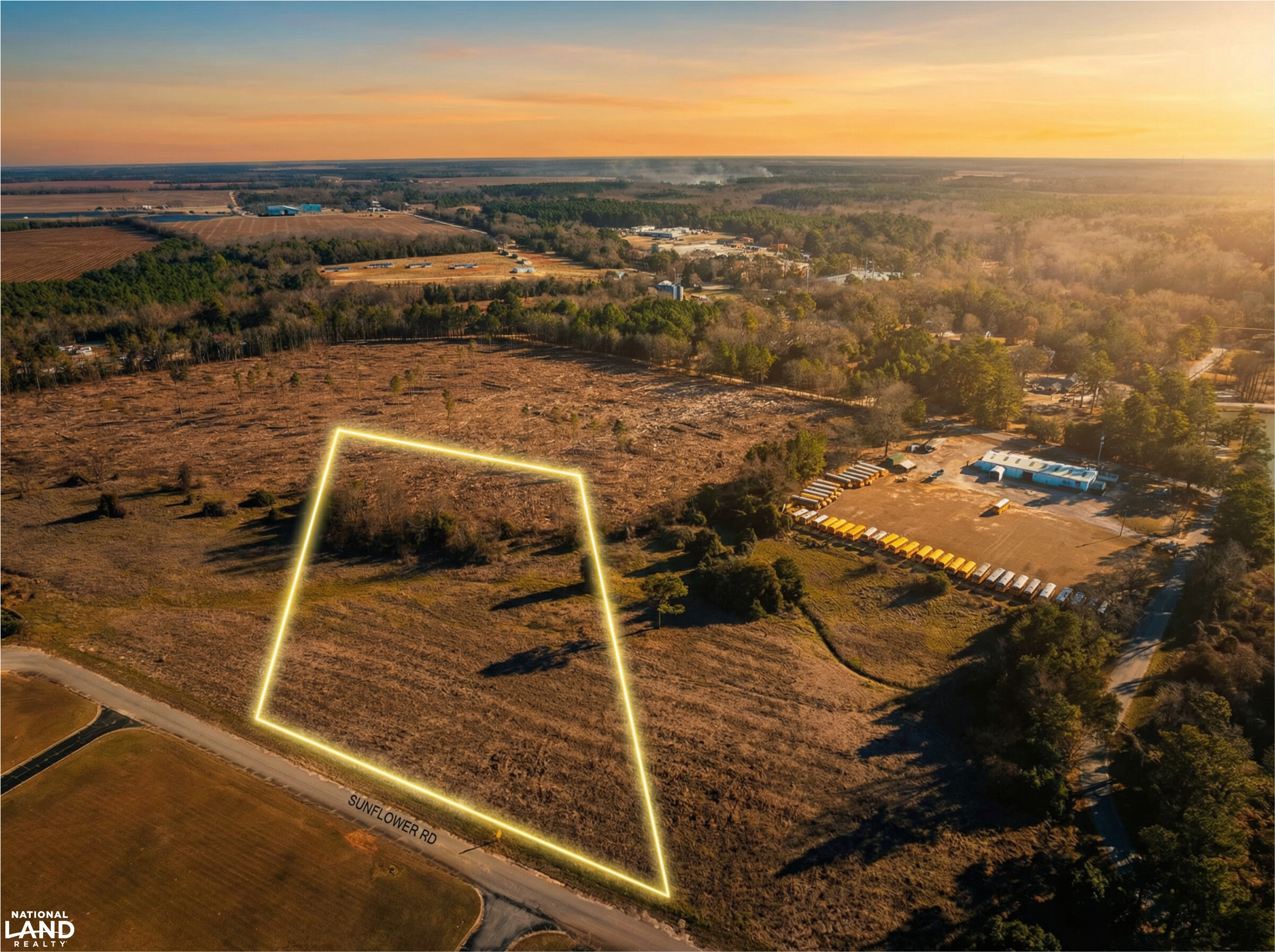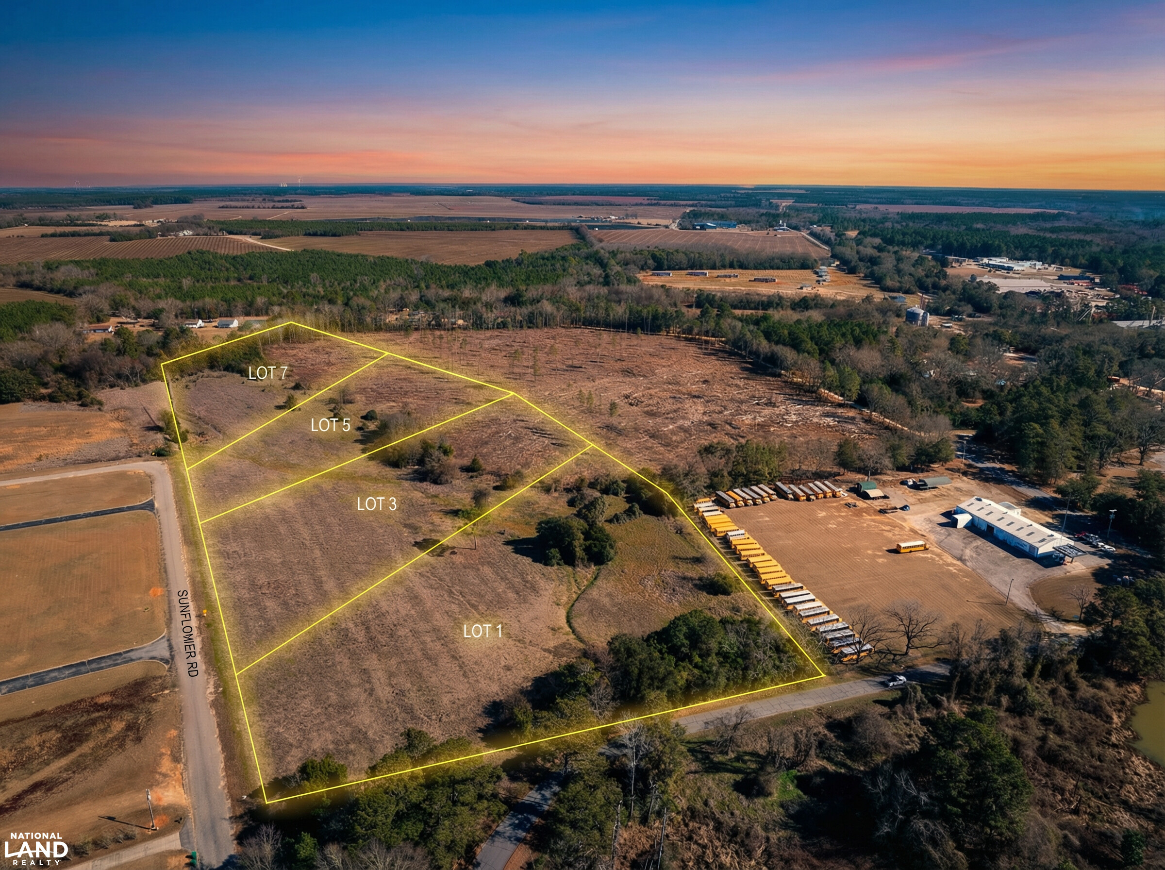 At the intersection of Hwy 601 and Bridge Street in St Matthews, head NW 0.3 miles towards Depot St then turn left. After the RR tracks turn right on FR Huff Drive and travel 0.3 miles then turn right on Milligan Circle. Continue towards Sunflower Rd and Scott Street to the lots.