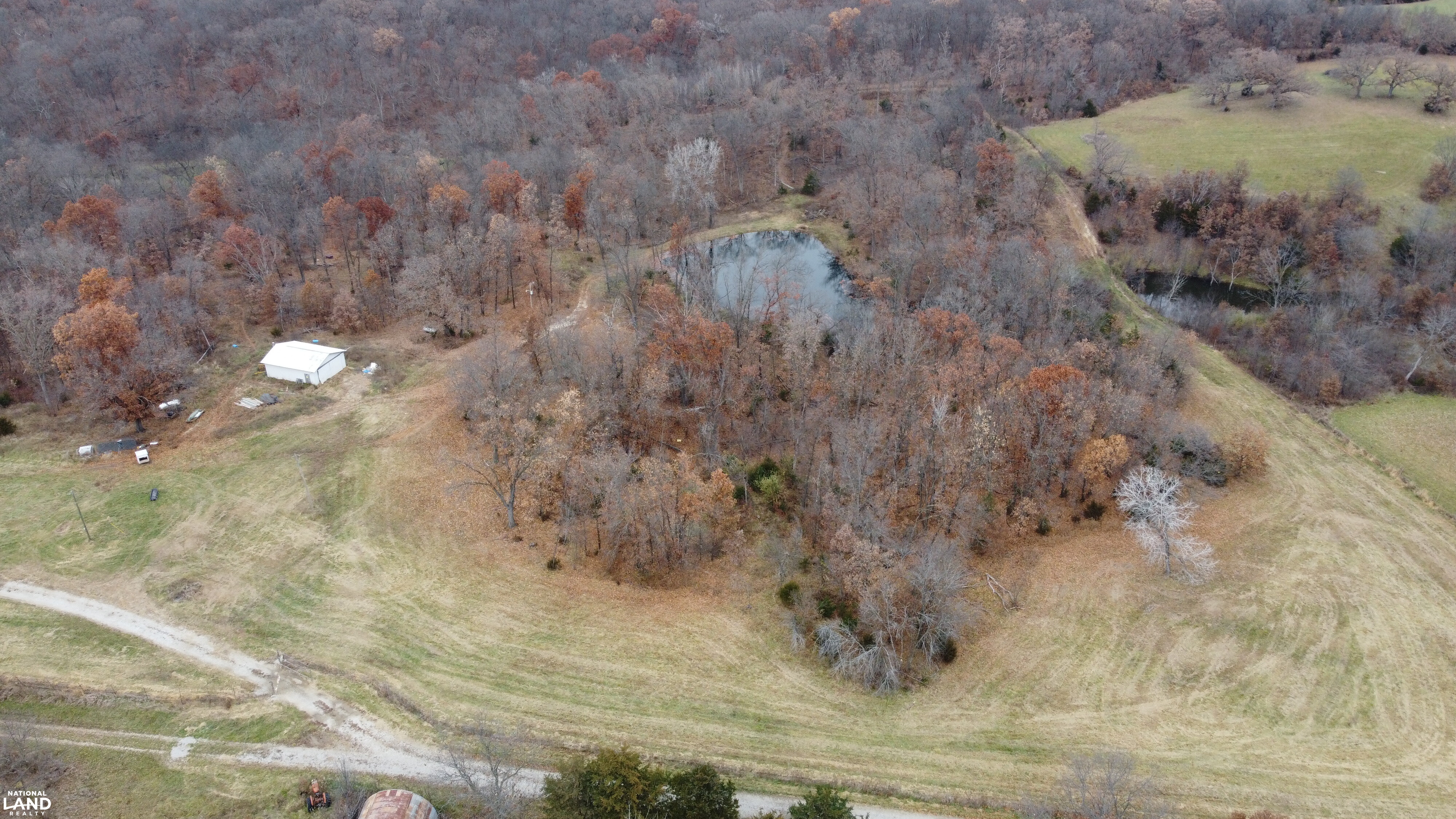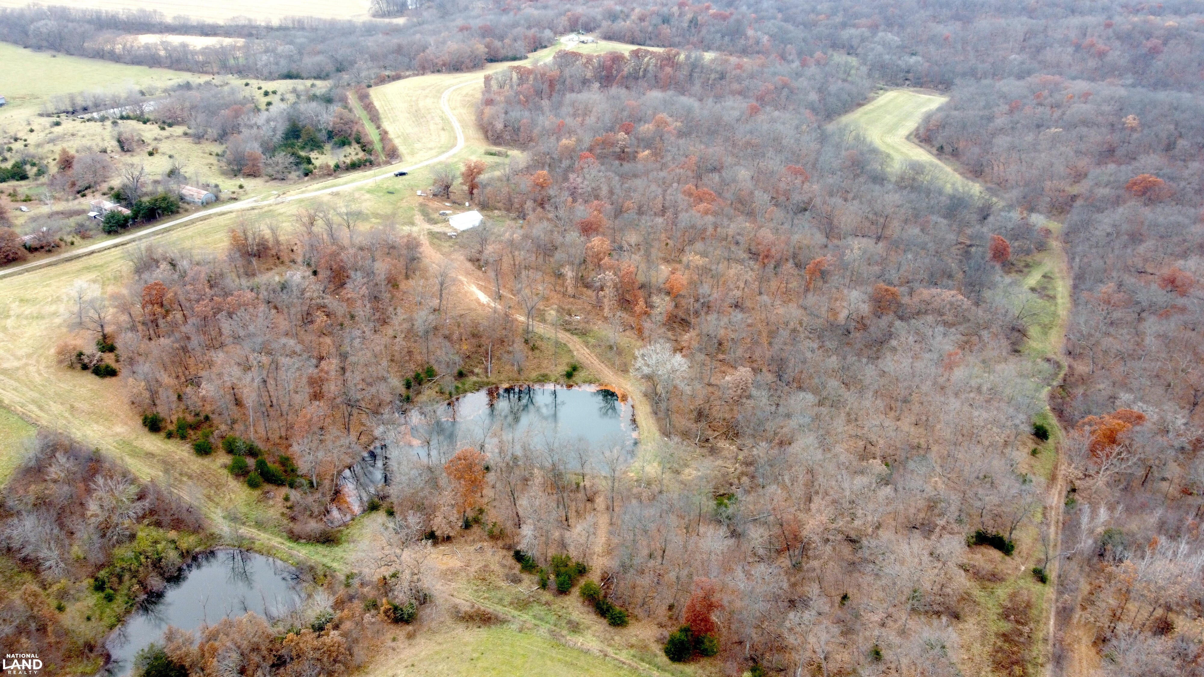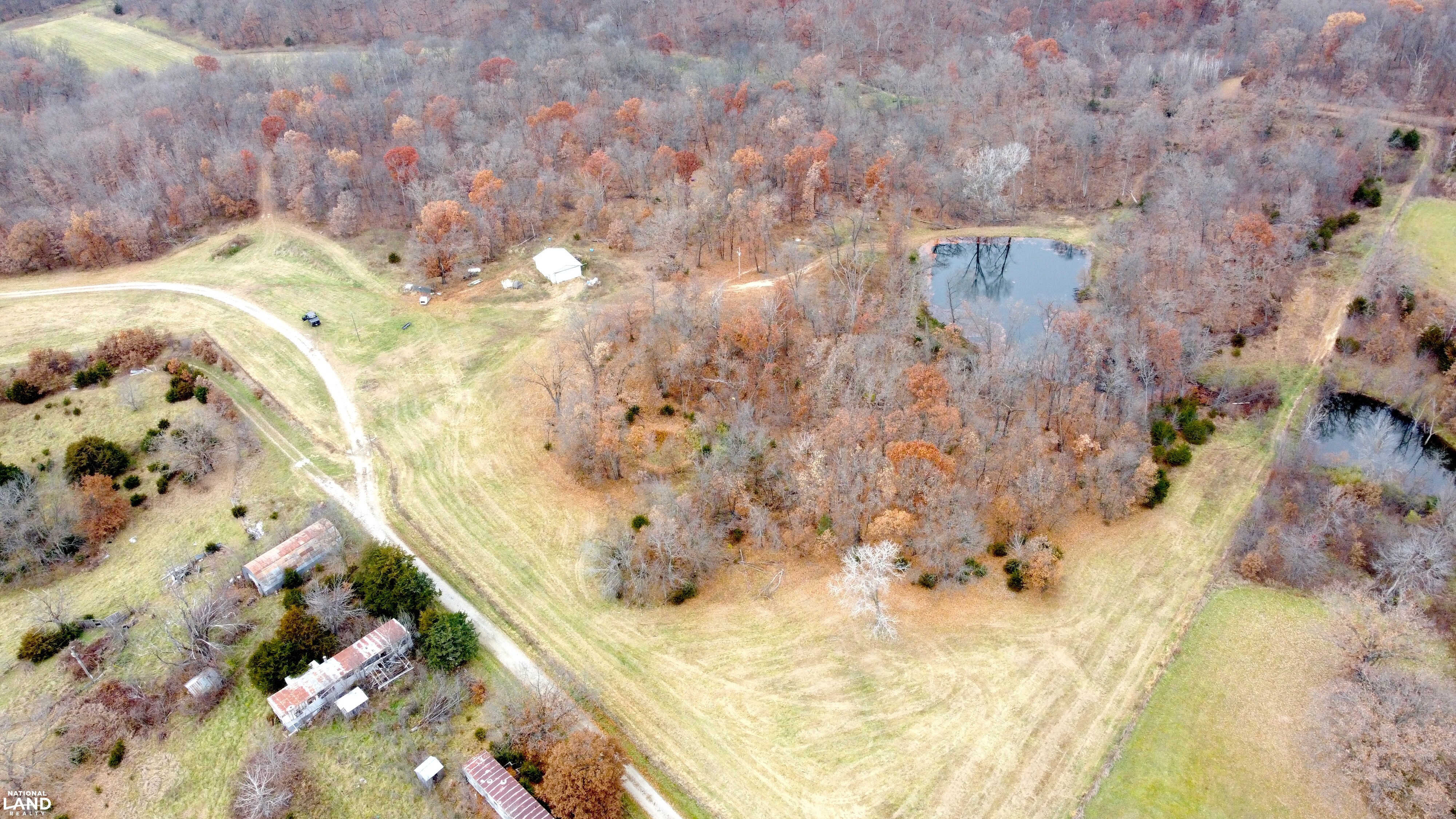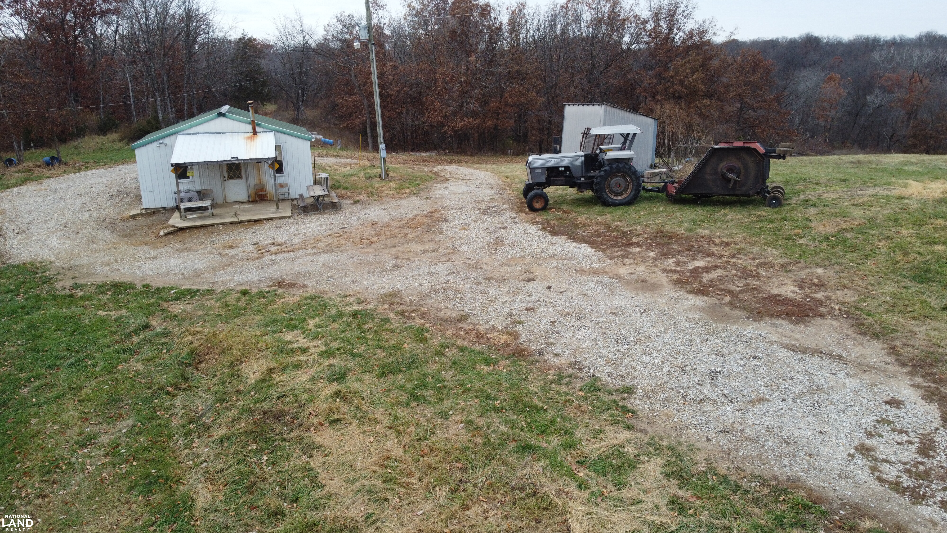 - Improvements include a small shop/cabin at the end of a private drive, an additional shop near the entrance, and miles of UTV trails.